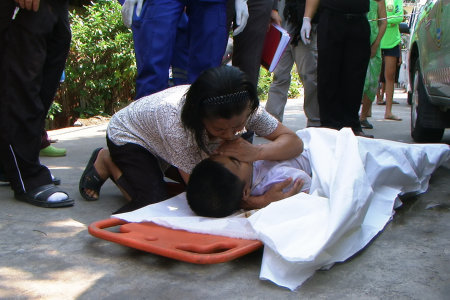 พ.ต.ท.ธวัช เคนดา สารวัตรเวรสอบสวน สภ.เมือง จ.ราชบุรี รับแจ้งเหตุเด็กนักเรียนตกบ่อเลี้ยงปลาในวัดมหาธาตุวรมหาธาตุ จึงเดินทางไปตรวจสอบในที่เกิดเหตุเป็นบ่อปูนสำหรับเลี้ยงปลาเต่า และตะพาบน้ำ ลึกประมาณ 3 เมตร  เจ้าหน้าที่หน่วยกู้ภัยได้ลงไปงมหาเด็กที่ตกลงไป และสามารถนำขึ้นมาได้ ทราบชื่อต่อมาคือ ด.ช.สุทธิพร สุดทวี  อายุ 12 ปี นักเรียนชั้น ป.6/2 โรงเรียนเทศบาล4