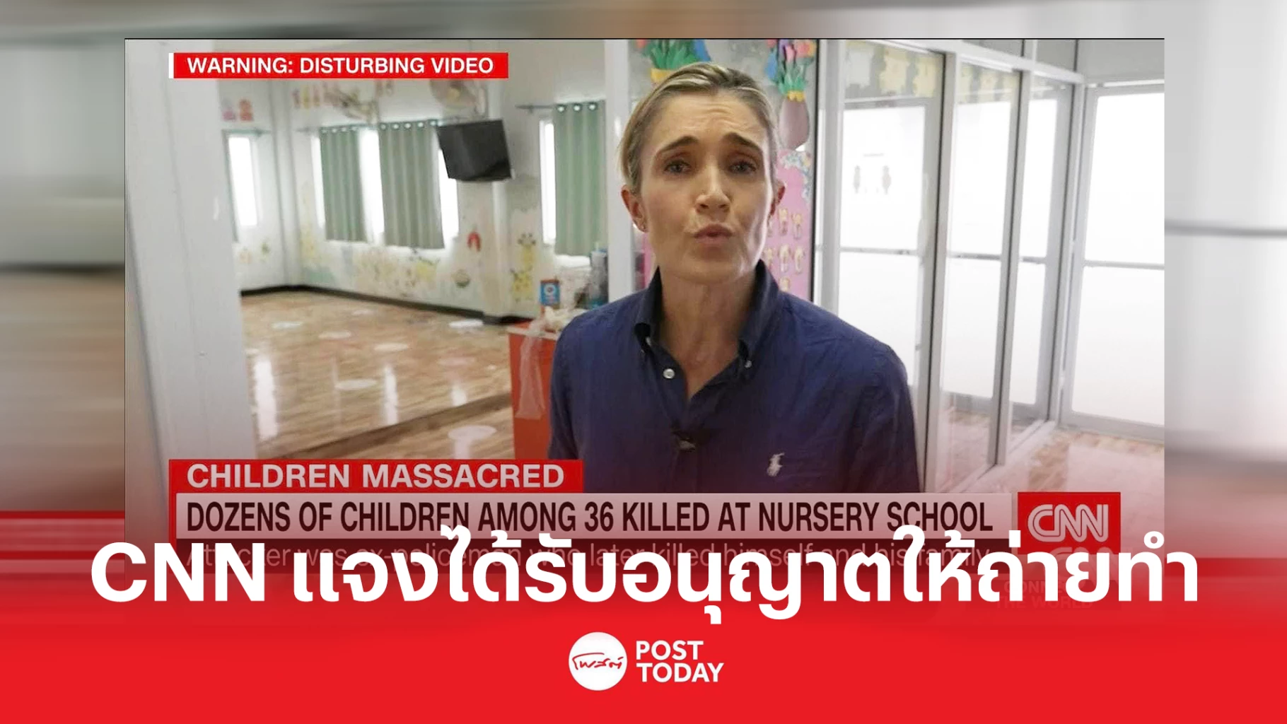 สำนักข่าว CNN ชี้แจง กรณีผู้สื่อข่าว CNN เข้าไปทำข่าวถึงด้านในศูนย์พัฒนาเด็กเล็กอุทัยสวรรรค์ จังหวัดหนองบัวลำภู จุดเกิดเหตุกราดยิงมีผู้เสียชีวิตและได้รับบาดเจ็บจำนวนมาก ว่า ได้เข้าไปถ่ายทำ พร้อมกับสื่ออื่นๆ ช่วงเวลาที่ได้มีการนำแถบปิดกั้นของเจ้าหน้าที่ตำรวจออกแล้ว