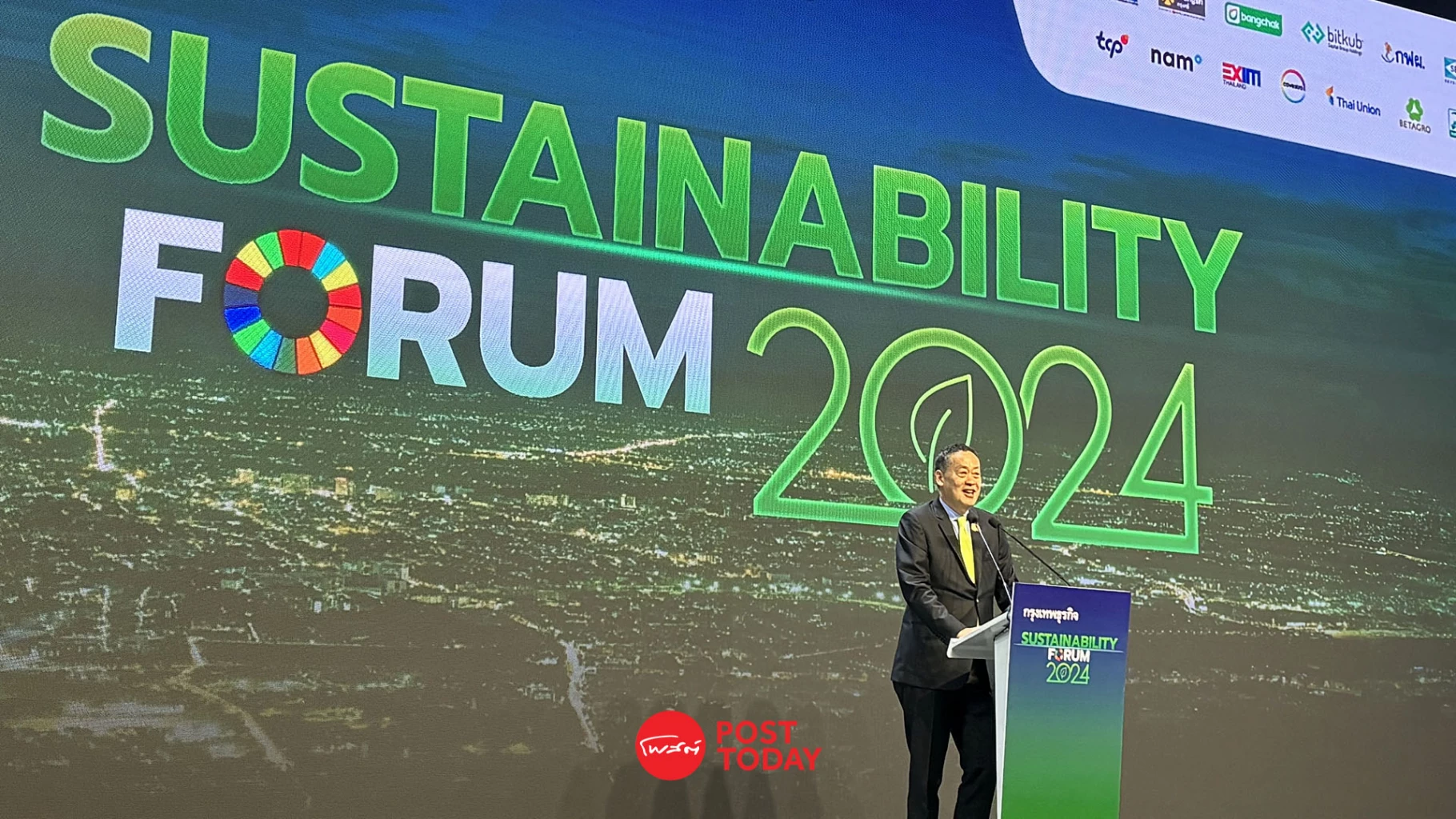 เศรษฐา ทวีสิน นายกรัฐมนตรีกล่าวปาฐกถาพิเศษในงาน “SUSTAINABILITY FORUM 2024” ย้ำ รัฐบาลนี้สนับสนุนพลังงานสะอาด ตั้งเป้าออกหุ้นกู้ส่งเสริมความยั่งยืน (SLB) 70 ล้านบาท หนุนมาตรการสีเขียว