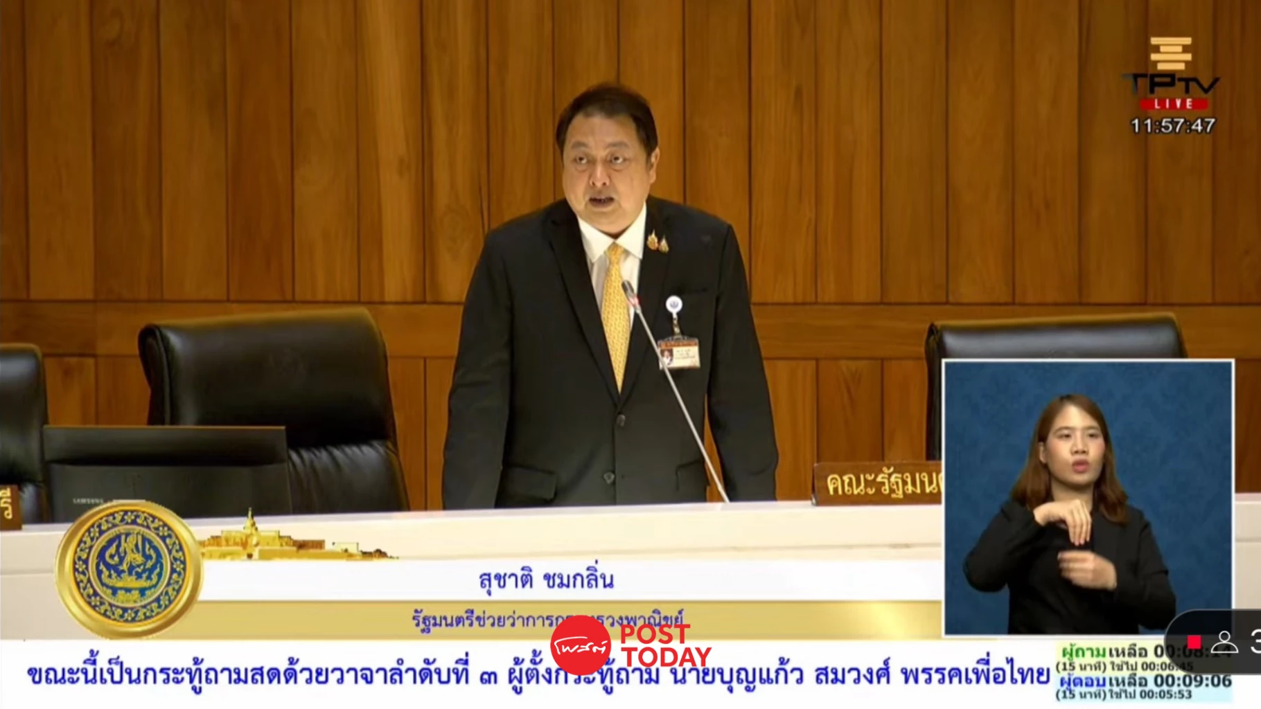 นายสุชาติ ชมกลิ่น รัฐมนตรีช่วยว่าการกระทรวงพาณิชย์ ตอบกระทู้ด้วยวาจาของนายบุญแก้ว สมวงศ์ สส. ยโสธร เขต 2 พรรคเพื่อไทยเกี่ยวกับประเด็นมันสำปะหลัง กระทรวงพาณิชย์ มีมาตรการแก้ไขปัญหาจากสถานการณ์ปัญหาราคามันสำปะหลัง ด้วยเหตุเนื่องจากปัญหาโรคไวรัสใบด่างมันสำปะหลัง ซึ่งออกมากในช่วงเดือน มกราคม - มีนาคม 2568 ประกอบกับการส่งออกผลิตภัณฑ์มันสำปะหลังในปี 2567 ลดลงเหลือเพียง 6.46 ล้านตัน ได้เสนอ ครม.เห็นชอบมาตรการรักษาเสถียรภาพราคามันสำปะหลัง ปี 67/68 จำนวน 4 โครงการ รวมงบประมาณทั้งสิ้น 368.90 ล้านบาท