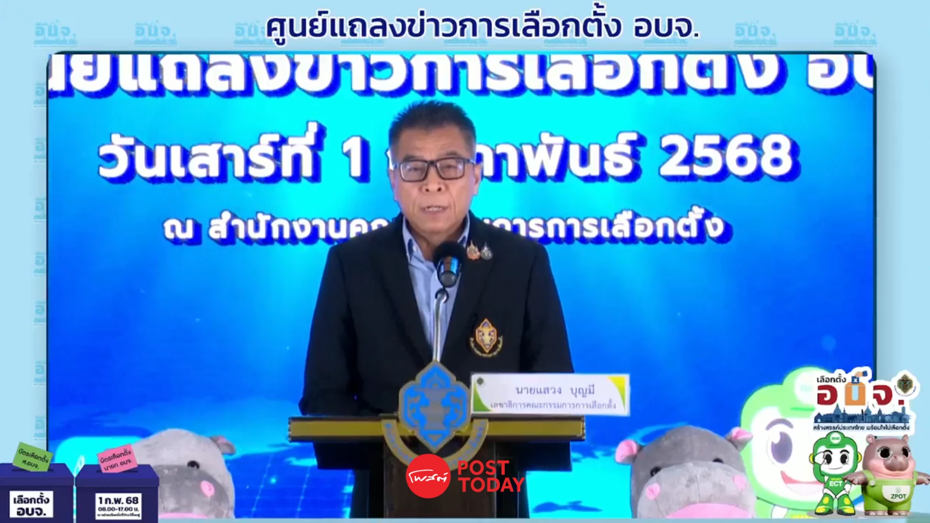 แสวง บุญมี เลขาธิการ กกต. แถลงหลังปิดหีบเลือกตั้งนายกและสมาชิก อบจ.68 พบผู้ฉีกบัตรเลือกตั้ง 6 ราย เร่งสอบกรณีบัตรหาย 300 ใบที่บึงกาฬ ประกาศผลเลือกตั้งได้ภายใน 30 วัน แต่หากทุจริตสามารถขยายเวลาประกาศผลได้ถึง 60 วัน