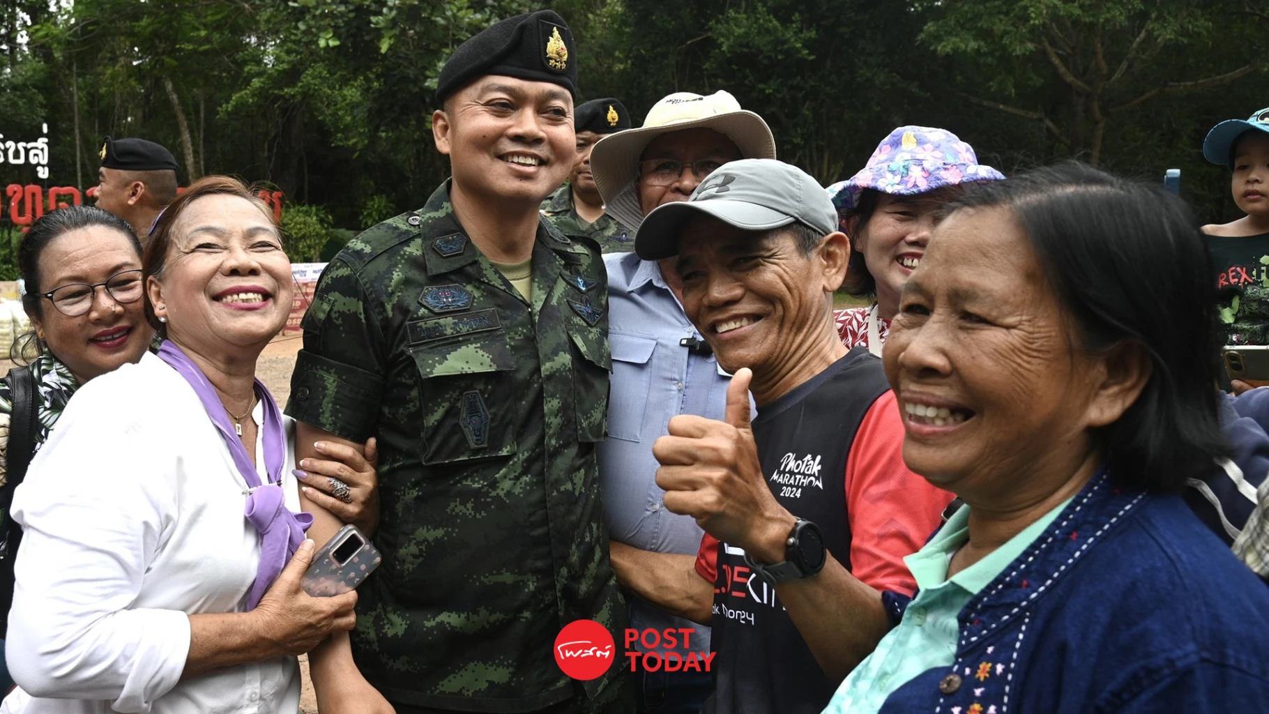 ประชาชนให้กำลังใจ "บิ๊กกุ้ง" แม่ทัพภาคที่ 2 ลงพื้นที่ปราสาทตาเมือนธม 1ใน4พื้นที่พิพาทกัมพูชาเตรียมยื่นศาลโลก
