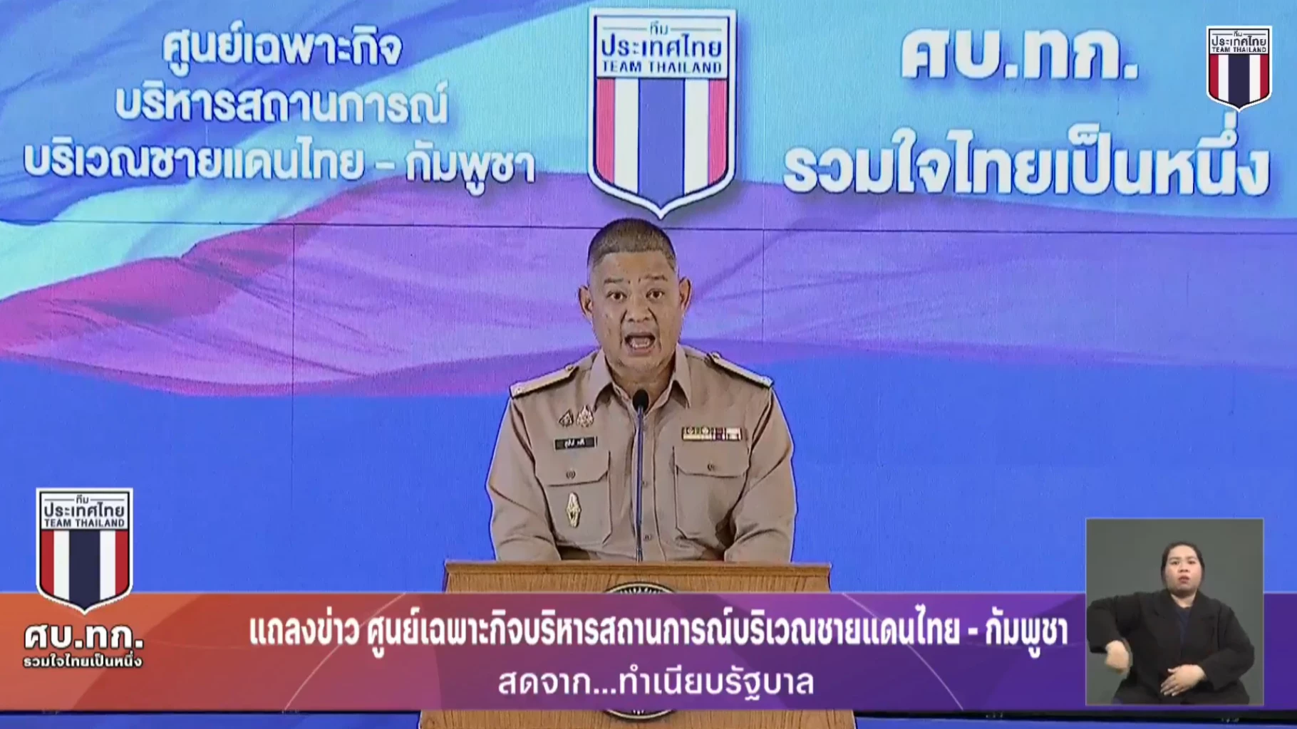 ศูนย์เฉพาะกิจบริหารสถานการณ์บริเวณชายแดนไทย-กัมพูชา (ศบ.ทก.) แถลงผลการประชุมประเด็นสถานการณ์ชายแดนไทย-กัมพูชา โดยมีประเด็นสำคัญดังนี้