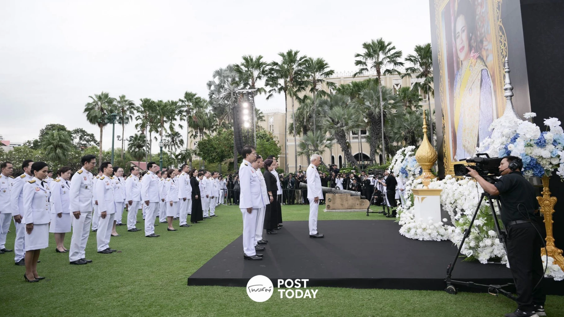 - ผู้ร่วมพิธียืนสงบนิ่ง 1 นาที แสดงความอาลัยแด่พระพันปีหลวง