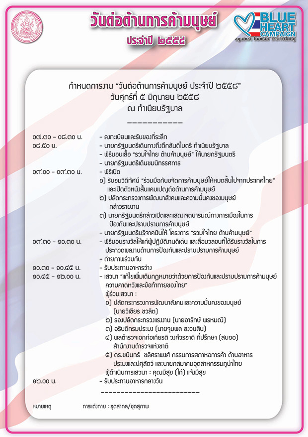 พม.จัดงาน “วันต่อต้านการค้ามนุษย์ 2558” มุ่งขจัดปัญหาค้ามนุษย์ให้หมดสิ้นไปจากประเทศ
