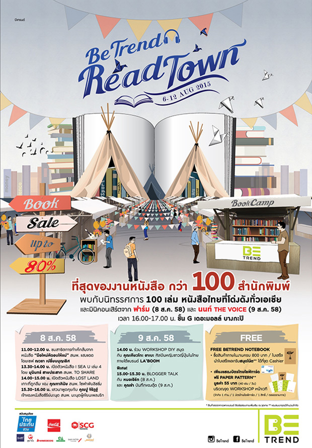 BETREND เดอะมอลล์ทุกสาขา เอ็มโพเรียม และพารากอนดีพาร์ทเม้นท์สโตร์ ร่วมกับ บริษัท ไทยประกันชีวิต จำกัด (มหาชน) บริษัท ไทยน้ำทิพย์ คอมเมอร์เชียล จำกัด บริษัท ผลิตภัณฑ์กระดาษไทย จำกัด และผู้ผลิตหนังสือกว่า 100 สำนักพิมพ์ มีความมุ่งมั่นให้เกิดวัฒนธรรมการอ่านขึ้นในสังคมไทยอย่างยั่งยื่น จึงผลักดันให้เกิดการจัดงาน BETREND READ TOWN ขึ้นทุกปีต่อเนื่องเป็นปีที่ 5 โดยรวบรวมหนังสือทุกประเภท ทั้งหนังสือวรรณกรรม เรื่องสั้น หนังสือเด็ก หนังสือ How-to จากกว่า 100 สำนักพิมพ์ อาทิ ร้านนายอินทร์, นานมีบุ๊คส์, ณ บ้านวรรณกรรม, บุ๊คไทม์, แจ่มใส, สยามอินเตอร์มัลติมีเดีย, มะนุดผู้เขียนเพลงรัก ฯลฯ ยังต้องการสนับสนุนงานเขียน และบทประพันธ์อันทรงคุณค่า โดยมีไฮไลท์สำคัญ พบกับสุดยอดหนังสือขายดีและครั้งแรกกับนิทรรศการ “100 เล่มหนังสือไทยที่โด่งดังทั่วเอเชีย” ที่รวบรวม 100 งานเขียนไทยสร้างชื่อที่ได้รับการซื้อลิขสิทธิ์และแปลเป็นภาษาต่างชาติกว่า 10 ประเทศทั่วโลก อาทิ ไต้หวัน จีน เกาหลี ฮ่องกง อังกฤษ ฝรั่งเศส เยอรมัน ฯลฯ อาทิ เวลาในขวดแก้ว ความสุขของกะทิ เดอะท็อปซีเคร็ต และอีกมากมายมาแนะนำ ให้คนไทยได้รู้จัก และเพื่อให้เกิดความภาคภูมิใจในผลงานของคนไทยด้วยกัน นอกจากนี้พบกิจกรรมที่คนรักหนังสือไม่ควรพลาด