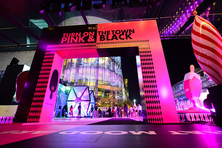 พร้อมกันนี้ แม็กนั่มได้เตรียมจับมือกับห้างสรรพสินค้าสยามเซ็นเตอร์และสยามพารากอน ซึ่งเป็นไอคอนของกรุงเทพฯ ซึ่งเป็นแหล่งแฮงค์เอ้าท์ของชาวสุขนิยม ปิดห้างสยามเซ็นเตอร์ เพื่อจัดงานปาร์ตี้ระดับทอล์กออฟเดอะทาวน์ “Magnum Pink&Black Turn on The Town Party” เอาใจเหล่าเซเลป ดารา เนทไอดอลคนดัง อาทิ อาทิ คณชัย เบญจรงคกุล / วฤธ หงสนันท์ / พลอยพยัพ ศรีกาญจนา / ธาราวดี สนิทวงศ์ ณ อยุธยา ฯลฯ รวมทั้งแม็กนั่มแฟน กว่า 300 คน ให้ร่วมลุ้นผลโหวตพร้อมปาร์ตี้กัน โดยในงานนี้ แม็กนั่มจัดเต็มความสนุกสนานมินิคอนเสิร์ตจาก จีน กษิดิศ และแขกรับเชิญคนพิเศษอย่าง ฌอห์ณ จินดาโชติ โดยมีพรีเซนเตอร์ไอศกรีมแม็กนั่ม “ใหม่ ดาวิกา โฮร์เน่” มาร่วมแจมในโชว์ไฮไลท์โชว์ โดยแขกที่มาร่วมงานพร้อมใจกันแชร์ความสนุกผ่านทางโซเชี่ยลเนทเวิร์ก และติด #iTurnPink และ #iTurnBlack