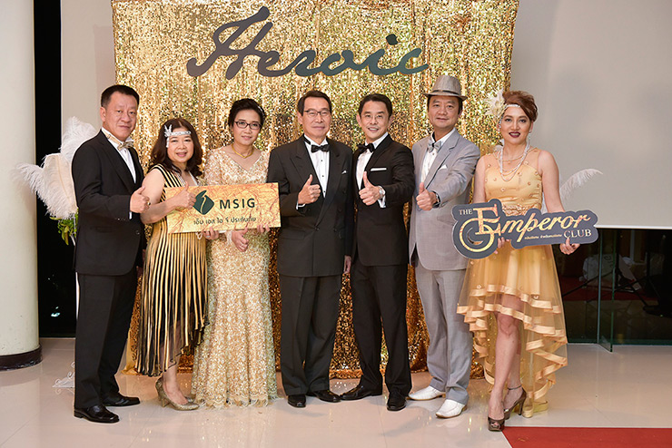 นายอรรณพ พรธิติ (ที่ 4 จากซ้าย) ประธานกรรมการ และนายรัฐพล กิติศักดิ์ไชยกุล (ที่ 3 จากขวา) กรรมการผู้อำนวยการ บริษัท เอ็ม เอส ไอ จี ประกันภัย (ประเทศไทย) จำกัด (มหาชน) จัดงาน Grand Opening เปิดตัว The Emperor Club “คลับพิเศษสำหรับคนพิเศษ”