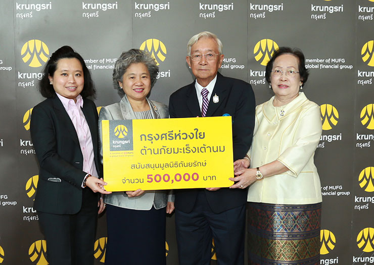 ในภาพ (จากซ้าย): นางสาวดวงดาว วงค์พนิตกฤต ประธานคณะเจ้าหน้าที่ด้านการเงิน ธนาคารกรุงศรีอยุธยา นางวรรณา ธรรมศิริทรัพย์ ประธานกลุ่มสนับสนุนธุรกิจด้านเทคโนโลยีสารสนเทศและปฏิบัติการ ธนาคารกรุงศรีอยุธยา นายแพทย์ธรรมนิตย์ อังศุสิงห์ ประธานศูนย์ถันยรักษ์ และเลขาธิการมูลนิธิถันยรักษ์ ศาสตราจารย์คลินิกเกียรติคุณ แพทย์หญิงคุณหญิงสำอางค์ คุรุรัตน์พันธ์ กรรมการมูลนิธิถันยรักษ์