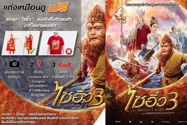 โมโนฟิล์ม และ เมเจอร์ซีนีเพล็กซ์ จับมือจัดแคมเปญสุดพิเศษ!! “แต่งเหมือนดูฟรี” ภาพยนตร์เรื่อง “ไซอิ๋ว 3 ตอน ศึกราชาวานรตะลุยเมืองแม่ม่าย”