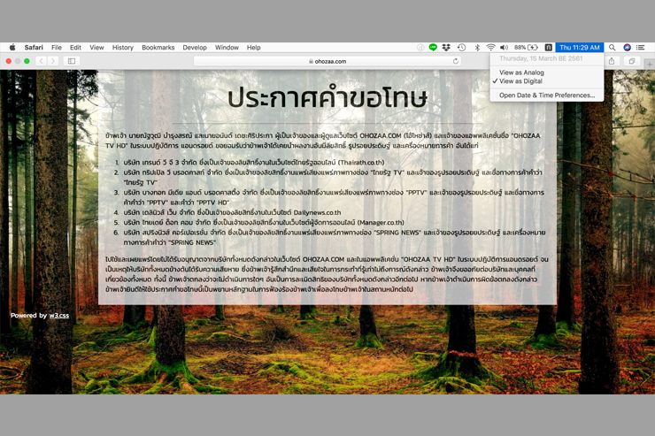 ข้าพเจ้า นายณัฐวุฒิ บำรุงสรณ์ และนายอนันต์ เดชะศิริประภา ผู้เป็นเจ้าของและผู้ดูแลเว็บไซต์ OHOZAA.COM (โอ้โหซ่าส์) และเจ้าของแอพพลิเคชั่นชื่อ "OHOZAA TV HD" ในระบบปฎิบัติการ แอนดรอยด์ ขอยอมรับว่าข้าพเจ้าได้เคยนำผลงานอันมีลิขสิทธิ์ รูปรอยประดิษฐ์ และเครื่องหมายการค้า อันได้แก่