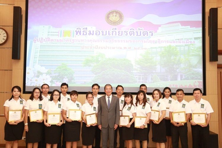 นายมณฑล สุดประเสริฐ อธิบดีกรมโยธาธิการและผังเมือง เป็นประธานมอบเกียรติบัตรผู้ปฏิบัติตามมาตรฐานทางคุณธรรมจริยธรรมของกรมโยธาธิการและผังเมือง