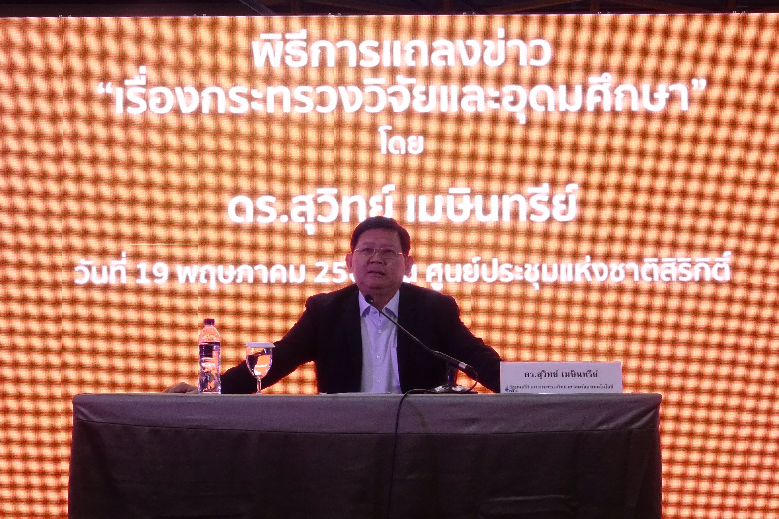 "สุวิทย์ เมษินทรีย์" รมว.วิทยาศาสตร์ฯ แถลงข่าวตั้งกระทรวงวิจัยและอุดมศึกษา ควบรวมกระทรวงวิทยาศาสตร์ฯ สำนักงานคณะกรรมการอุดมศึกษาและหน่วยงานวิจัยของประเทศทั้งหมดมาไว้ในกระทรวงเดียวกัน