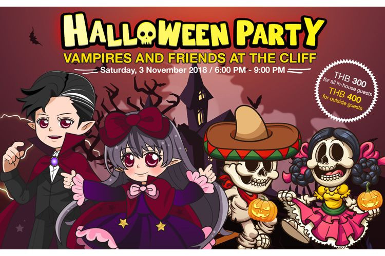 เตรียมชุดคอสตูมให้พร้อม แล้วพาครอบครัวมาปลดปล่อยความสนุกกันอีกครั้ง กับปาร์ตี้ฮาโลวีนที่รอยัล คลิฟ โฮเต็ล กรุ๊ป ในธีม "Vampires and Friends at the Cliff" วันเสาร์ที่ 3 พฤศจิกายนนี้ ตั้งแต่เวลา 18.00 – 21.00 น.