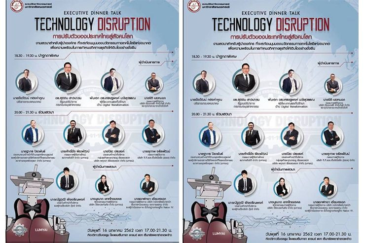 พร้อมแล้วงานปาฐกถาและเสวนาหัวข้อเรื่อง ”Technology Disruption การปรับตัวของประเทศไทยสู่สังคมโลก” 16 ม.ค 62 ห้องวิภาวดีบอลรูม ณ โรงแรมเซ็นทารา แกรนด์ เซ็นทรัลลาดพร้าว