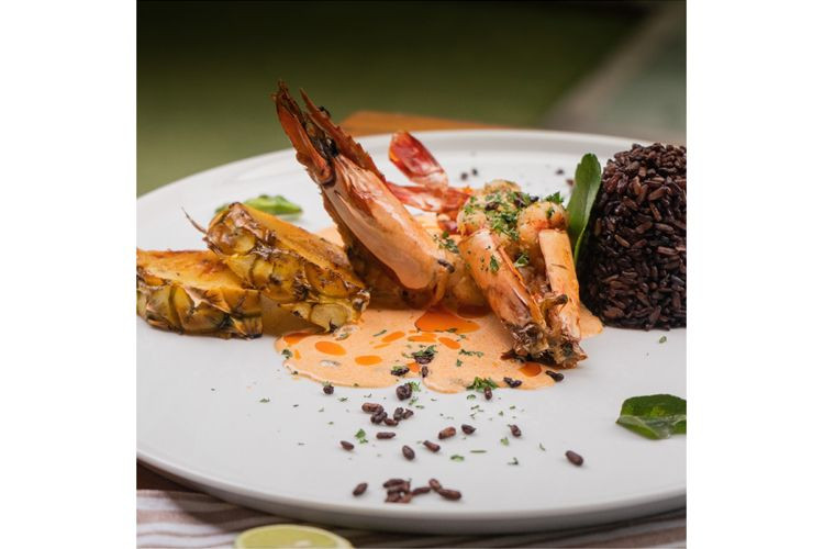 ห้องอาหาร เรเดียส เคป ดารา รีสอร์ท พัทยา พร้อมเสิร์ฟ กุ้งลายเสือย่าง ร้อนๆ เคียงคู่กับซอสต้มยำเข้มข้นรสชาติ จัดจ้านเคียงคู่กับสับปะรสหวานย่างและข้าวไรท์เบอร์รี่