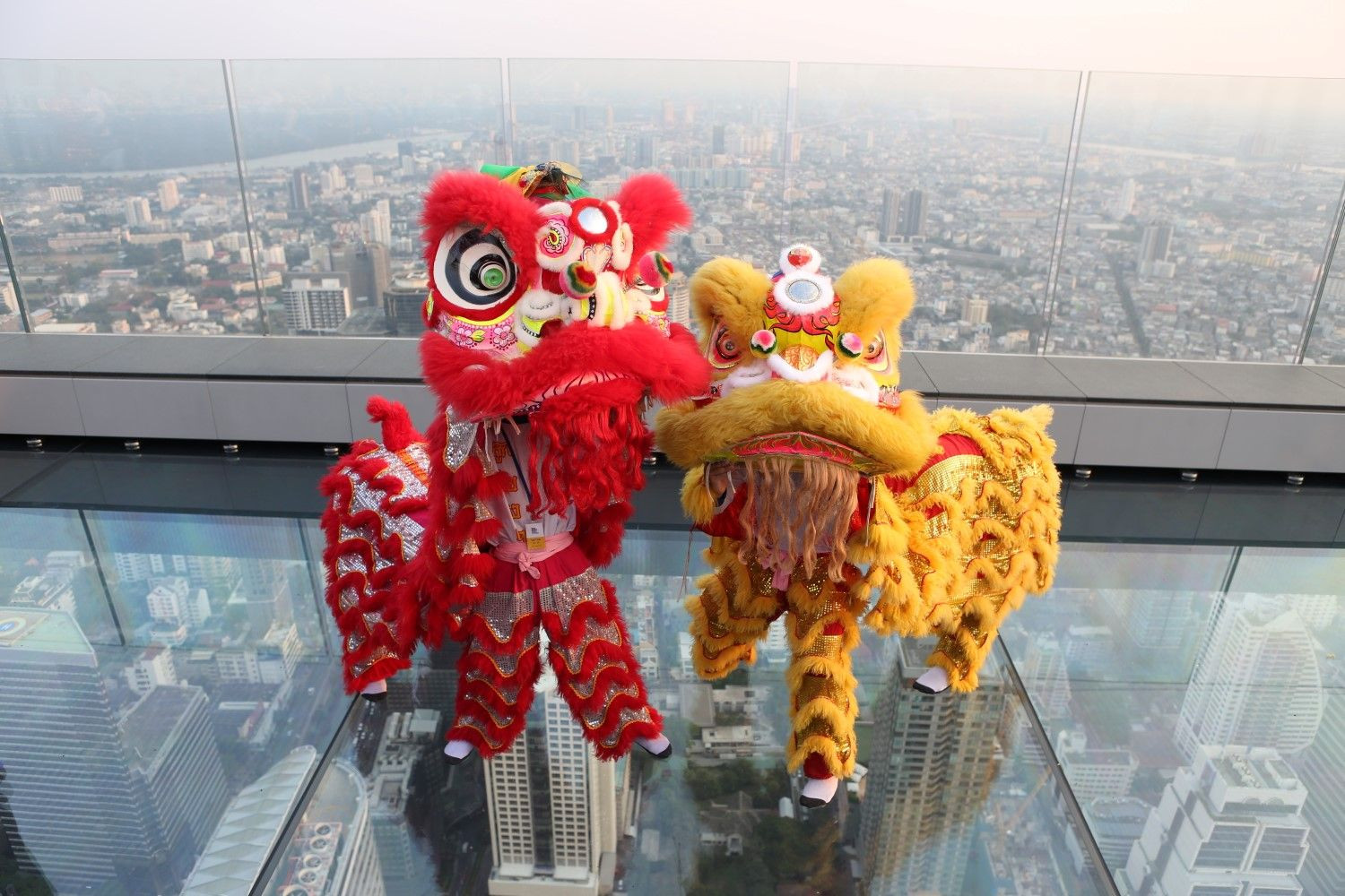 คิง เพาเวอร์ มหานคร ที่สุดของแลนด์มาร์คท่องเที่ยวในประเทศไทยจัดการแสดงเชิดสิงโตบนพื้นกระจกลอยฟ้าครั้งแรกในประเทศไทยที่ความสูง 310 เมตรจากพื้น!! เสริมความเป็นสิริมงคล และสร้างความตื่นตาตื่นใจให้กับนักท่องเที่ยว ณ มหานคร สกายวอล์ค เมื่อวันที่ 4 ก.พ. ที่ผ่านมา