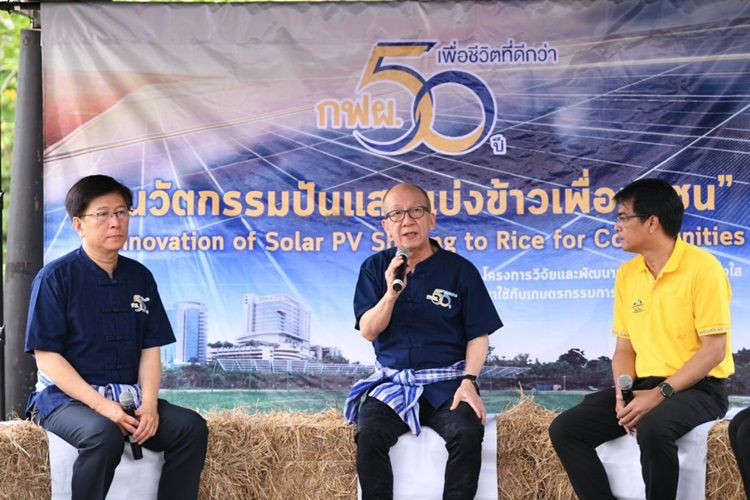 นายวิบูลย์ ฤกษ์ศิระทัย ผู้ว่าการ กฟผ. กล่าวว่า กฟผ. เห็นถึงความสำคัญของงานวิจัยและนวัตกรรมที่สร้างประโยชน์ให้กับสังคม ซึ่ง “นวัตกรรมปันแสงแบ่งข้าวเพื่อชุมชน” เป็นโครงการวิจัยการใช้โซลาร์เซลล์กึ่งใสร่วมกับการทำเกษตรกรรมการปลูกข้าวพันธุ์ไรซ์เบอรี่ ซึ่งเป็นพันธุ์ข้าวเศรษฐกิจที่มีคุณค่าทางอาหารและได้รับความนิยมสูง โดยดำเนินโครงการร่วมกับ มหาวิทยาลัยเทคโนโลยีราชมงคลพระนคร มหาวิทยาลัยราชภัฏกาญจนบุรี มหาวิทยาลัยราชภัฏจันทรเกษม และกรมพัฒนาที่ดิน บนพื้นที่บริเวณสวนน้ำพระทัย โรงไฟฟ้าพระนครเหนือ เพื่อสร้างความเชื่อมโยงในการผลิตไฟฟ้าที่เป็นมิตรต่อภาคการเกษตร โดยน้ำที่ใช้ในการปลูกข้าวนำมาจากบ่อพักน้ำของโรงไฟฟ้าพระนครเหนือ ชุดที่ 2 ที่ผ่านการปรับสภาพน้ำและผ่านการตรวจสอบจากห้องทดลองที่รับรองมาตรฐานแล้วว่าสามารถใช้ปลูกพืชทางการเกษตรและสามารถรับประทานได้อย่างปลอดภัย นอกจากนี้ พลังงานไฟฟ้าที่ได้จากโซลาร์เซลล์ในโครงการวิจัยดังกล่าว ได้ถูกส่งไปใช้ที่ห้องควบคุมไฟฟ้าและเครื่องสูบน้ำของโครงการวิจัย รวมถึงใช้ในอาคาร Co-Working Space ของโรงไฟฟ้าพระนครเหนือ มาตั้งแต่เริ่มโครงการในเดือนพฤศจิกายน 2561 จนถึงปัจจุบัน สามารถลดการใช้พลังงานได้ถึง 18,000 หน่วย และลดค่าใช้จ่ายได้กว่า 72,000 บาท จึงพิสูจน์ได้ว่า โครงการวิจัยสามารถบูรณาการด้านพลังงานไฟฟ้าและสามารถปลูกพืชทางการเกษตรให้เป็นมิตรกับสิ่งแวดล้อม และชุมชนได้อย่างยั่งยืนการนำโซลาร์เซลล์กึ่งใสมาใช้ร่วมกับการปลูกข้าว จะทำให้เกษตรกรสามารถนำพลังงานที่ผลิตได้ในพื้นที่นาข้าวมาใช้ประโยชน์ใช้ในกิจกรรมทางการเกษตรอื่นๆ หรือใช้ในบ้านเรือน อีกทั้ง กฟผ. ยังมีแนวทางพัฒนาต่อยอด โดยจะนำข้อมูลจากงานวิจัยไปประยุกต์ใช้ในการปลูกพืชเศรษฐกิจชนิดอื่นๆ ที่มีมูลค่าสูง สำหรับชุมชน เกษตรกรรม และโรงเรียน รวมถึงเป็นต้นแบบการพัฒนาไปสู่ระบบฟาร์มอัจฉริยะ (Smart Farm) ในอนาคต