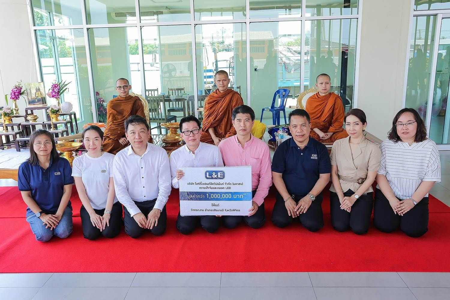 บริษัท ไลท์ติ้ง แอนด์ อีควิปเมนท์ จำกัด (มหาชน) หรือ L&E นำทีมโดยคุณกฤษดา ทรัพย์ทวยชน (ที่ 3 จากซ้าย) กรรมการบริหาร พร้อมด้วยคุณพงศกร อู่วุฒิพงษ์ (ที่ 4 จากขวา) ผู้อำนวยการฝ่ายผลิตภัณฑ์ LED คุณอนรรฆ ซื่อยิ่งกาญจน์ (ที่ 4 จากซ้าย) ผู้อำนวยการบริหารฝ่ายพัฒนาธุรกิจ คุณวลัยลักษณ์ วงศ์ธนวัฒน (ที่ 2 จากซ้าย) ผู้จัดการอาวุโส ฝ่ายการตลาด และพนักงาน ร่วมถวายเสาไฟ โคมไฟ และหลอด LED มูลค่ารวมกว่า 1,000,000 บาท ให้กับวัดกรดงาม อำเภอวชิรบารมี จังหวัดพิจิตร โดยมีท่านพระมหาภานุพง(ซ้าย) เจ้าอาวาสวัดกรดงาม รับถวาย ณ โกดัง L&E นพวงศ์ เมื่อเร็ว ๆ นี้ เพื่อเป็นประโยชน์กับผู้ปฏิบัติธรรม และเสริมความเป็นสิริมงคลและความเจริญแก่บริษัทฯ