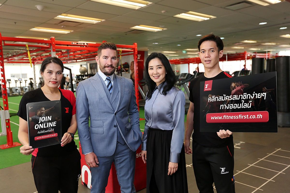ฟิตเนส เฟิรส์ท ผู้นำฟิตเนสอันดับหนึ่งของเมืองไทย นำโดย มร.มาร์ค เอลเลียต บิวคานันท์ กรรมการบริหาร บริษัท อีโวลูชั่น เวลล์เนสส์ (ประเทศไทย) จำกัด (ที่ 2 จากซ้าย) พร้อมด้วย นางอรวรรณ เกลียวปฏินนท์ ผู้จัดการฝ่ายการตลาด บริษัท อีโวลูชั่น เวลล์เนสส์ (ประเทศไทย) จำกัด (ที่ 3 จากซ้าย) เดินหน้าปรับกลยุทธ์เข้ากับยุค 4.0 เปิดสมัครสมาชิกผ่านออนไลน์ เอาใจไลฟ์สไตล์คนยุคใหม่ อยู่ที่ไหนก็สมัครสมาชิกได้ง่ายๆ ทาง www.fitnessfirst.co.th สะดวก รวดเร็ว การันตีเรื่อง “ราคา” ตามมาตรฐานของแต่ละคลับ มั่นใจเป็นอีกหนึ่งช่องทางเพิ่มยอดสมัครสมาชิก
