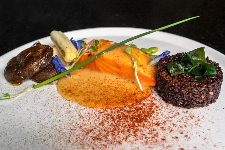 ปลาแซลมอนย่างเสิร์ฟซอสมิโซะ ที่ห้องอาหาร เรเดียส เคป ดารา รีสอร์ท พัทยา