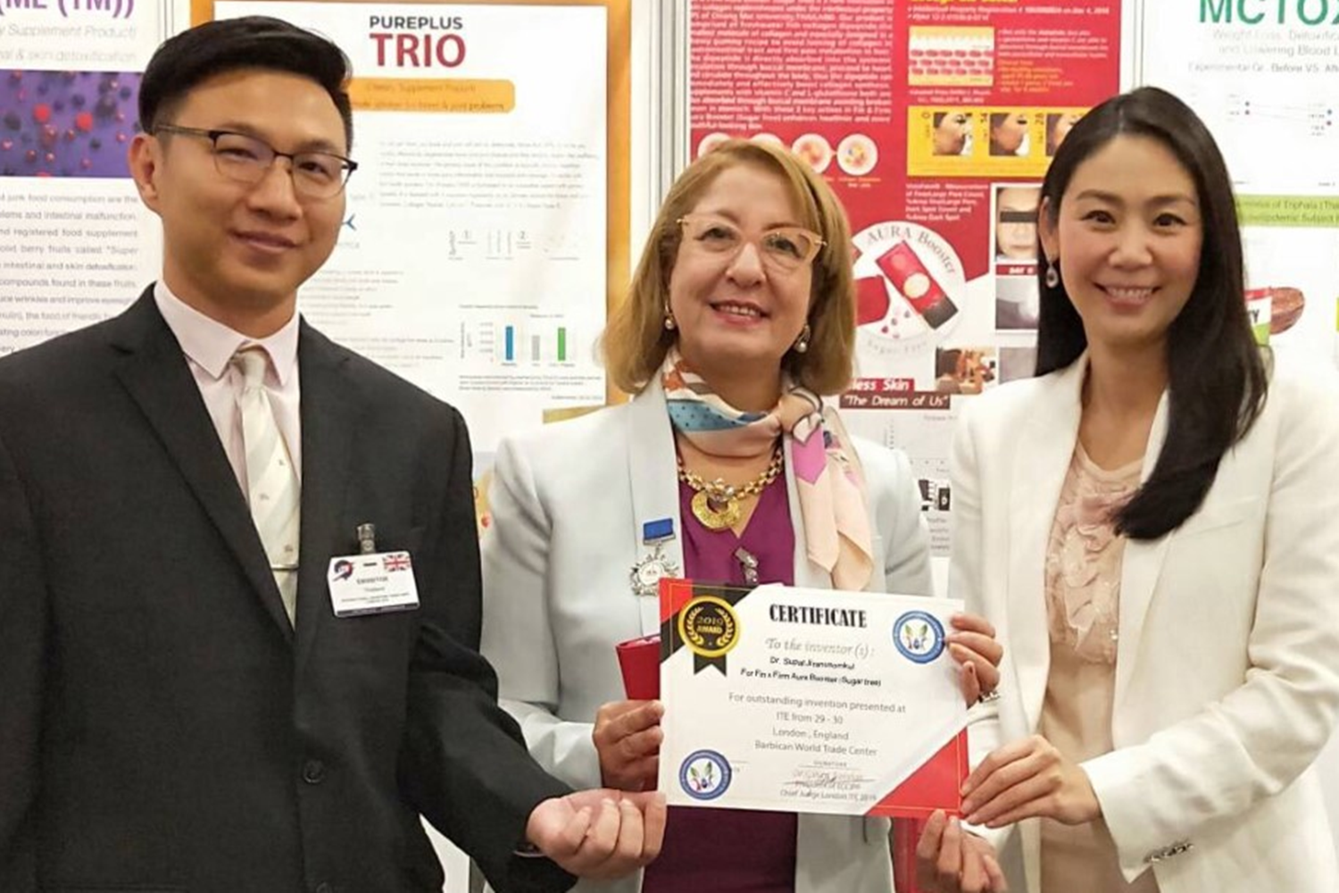 ผศ.ดร.เภสัชกร สุพัฒน์ จิรานุสรณ์กุล หัวหน้าคณะวิจัยคณะเภสัชศาสตร์ ม.เชียงใหม่ เปิดเผยว่า นักวิจัยคณะเภสัชศาสตร์และคณะอุตสาหกรรมเกษตร ม.เชียงใหม่ ได้รับเหรียญทองจากการส่งผลงานเข้าประกวดในงานนวัตกรรมนานาชาติ “International Invention & Trade Expo London 2019” จัดขึ้นที่รุงลอนดอน ประเทศอังกฤษ โดยมีผู้ส่งผลงานเข้าร่วมประกวดมากกว่า 20 ประเทศ อาทิ อังกฤษ, ฝรั่งเศส, อิตาลี, โมรอคโค, โปแลนด์, อิหร่าน, จีน, เกาหลี, ไต้หวัน, ฟิลิปปินส์, อินโดนีเซีย เป็นต้น ซึ่งนอกจากได้รับเหรียญทองในงานนี้แล้ ยังคว้าเหรียญรางวัลพิเศษจาก World Invention Intellectual Property Associations (WIIPA) และ Certificate พิเศษจากประธานกรรมการตัดสินการประกวดอีกด้วย