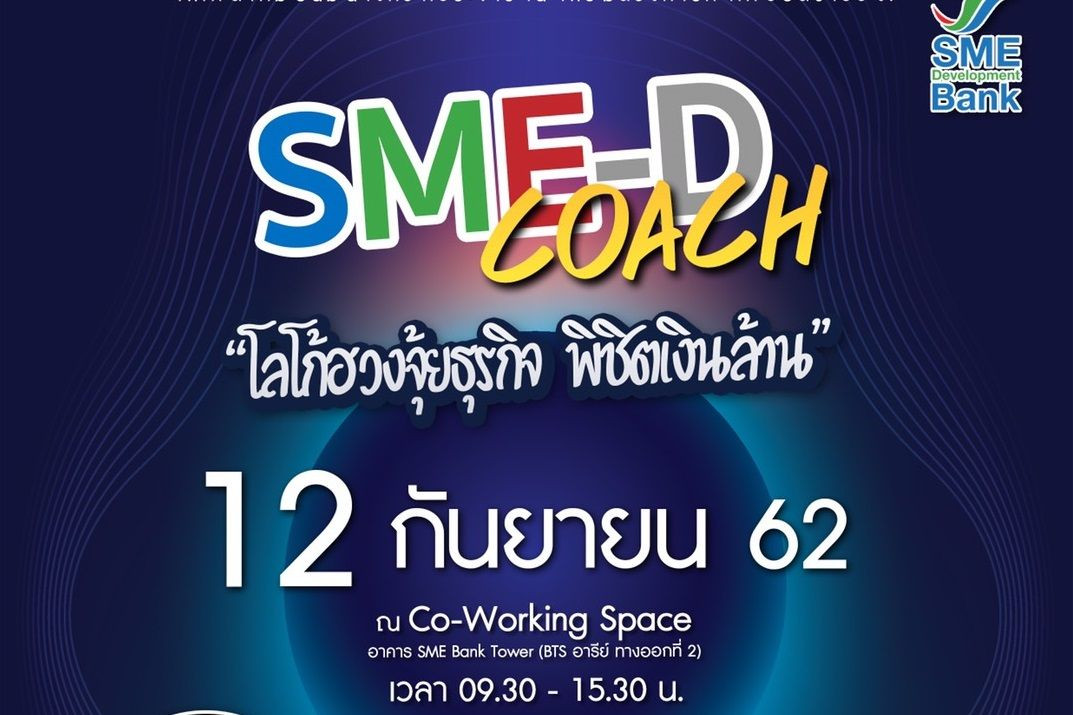 ธนาคารพัฒนาวิสาหกิจขนาดกลางและขนาดย่อมแห่งประเทศไทย (ธพว.) หรือ SME D Bank จัดกิจกรรม SME D Coach โลโก้ฮวงจุ้ยธุรกิจ พิชิตเงินล้าน โดยอาจารย์พวงทอง สุขสมโภชน์ กูรูโหรศาสตร์และฮวงจุ้ย ระดับแนวหน้าของเมืองไทย มาให้ความรู้ คำปรึกษาแก่ผู้ประกอบการ SMEs ที่สนใจและอยากปรับเปลี่ยนโลโก้ ผลิตภัณฑ์และแพคเกจจิ้งใหม่ ฟรี! มาไขความลับและท้าพิสูจน์ความปังพร้อมกัน ภายในงานมีนักออกแบบอิสระกว่า 10 กิจการ มาเป็นโค้ชให้คำปรึกษาแนะนำการปรับเปลี่ยนโลโก้และด้านอื่นๆ ตามแนวทางที่ผู้ประกอบการต้องการ และยังมีบูธแนะนำการเข้าสู่แหล่งเงินทุนอัตราดอกเบี้ยพิเศษจาก SME D Bank พร้อมให้บริการในวันพฤหัสบดีที่ 12 กันยายน พ.ศ. 2562 เวลา 9.30 – 15.30 น. ณ พื้นที่ Co-working Space ชั้น 1 อาคาร SME Bank Tower BTS อารีย์