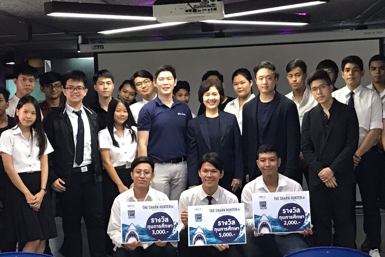 นี่คือโอกาสพิเศษที่ Shark Tank Thailand ได้ขยายเมล็ดพันธ์ธุรกิจสู่รั้วมหาวิทยาลัย โดยร่วมกับสถาบัน DPU X โดย มหาวิทยาลัยธุรกิจบัณฑิตย์ จัดกิจกรรม “DPU X The Shark Hunter Bootcamp” เปิดโอกาสให้นักศึกษานำเสนอโมเดลและไอเดียธุรกิจเข้ามายังรายการ กิจกรรมนี้มีน้องๆให้ความสนใจร่วมลงสมัครเป็นจำนวนมาก โดยผ่านการคัดเลือกจำนวน 50 คน หรือ 18 ทีม ภายใต้กิจกรรมนี้น้องๆ ทั้งหมดได้รับการติวเข้มในกิจกรรม Bootcamp เมื่อวันที่ 10-11 กันยายนที่ผ่านมา โดยได้บรรดารุ่นพี่จากรั้ว มธบ. ที่ผ่านเวที Startup Thailand League มาผนึกกำลังความรู้กับอาจารย์ที่มีความเชี่ยวชาญในแต่ละสาขามาเป็น Mentor คอยเป็นที่ปรึกษาแนะแนวให้ตลอดเวลาที่ร่วมกิจกรรม และหลังจากกิจกรรม Bootcamp ได้คัดเลือก10 ทีม จาก 18 ทีม เพื่อเสนอไอเดียธุรกิจต่อคณะกรรมการจาก Shark Tank Thailand และคัดเลือกทีมที่ชนะเลิศเข้าร่วมรายการไป เมื่อวันที่ 24 กันยายนที่ผ่านมา โดยท้ายสุดมีเพียง 3 ทีม ที่ผ่านการคัดเลือกจาก Shark Tank Thailand ได้แก่ 1. ทีม K.S.K Healtec เสนอแผนธุรกิจผลิตเครื่องกายภาพบำบัดราคาถูก 2. ทีมยันหว่าง ธุรกิจบริการเช่าของเล่นเด็ก และ 3.ทีม Diamond Sky ธุรกิจผลิตเครื่องลดค่าใช้จ่ายการใช้ไฟฟ้า