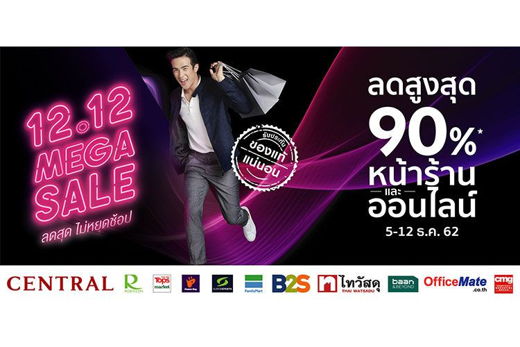 บริษัท เซ็นทรัล รีเทล คอร์ปอเรชั่น จำกัด (มหาชน) (“เซ็นทรัล รีเทล”) เดินหน้าส่งความสุขส่งท้ายปีกับมหกรรมช้อปปิ้งสุดยิ่งใหญ่ “12.12 Mega Sale” มอบโปรโมชั่นสุดคุ้มพร้อมส่วนลดสูงสุด 90% และรับประกันสินค้าของแท้ทุกชิ้น โดยมีทุกกลุ่มธุรกิจในอาณาจักรค้าปลีก เซ็นทรัล รีเทล ตบเท้าเข้าร่วม ได้แก่ ห้างสรรพสินค้าเซ็นทรัล ห้างสรรพสินค้าโรบินสัน ซูเปอร์สปอร์ต เพาเวอร์บาย เซ็นทรัล มาร์เก็ตติ้ง กรุ๊ป ไทวัสดุ บ้าน แอนด์ บียอนด์ ท็อปส์ เซ็นทรัล ฟู้ด ฮอลล์ แฟมิลี่มาร์ท และมัทสึโมโตะ คิโยชิ ตลอดจนกลุ่มธุรกิจอื่นๆ ภายในกลุ่มเซ็นทรัล อาทิ ออฟฟิศเมท และ บีทูเอส ระหว่างวันที่ 5-12 ธันวาคมนี้ ครอบคลุมทั้งหน้าร้านและออนไลน์