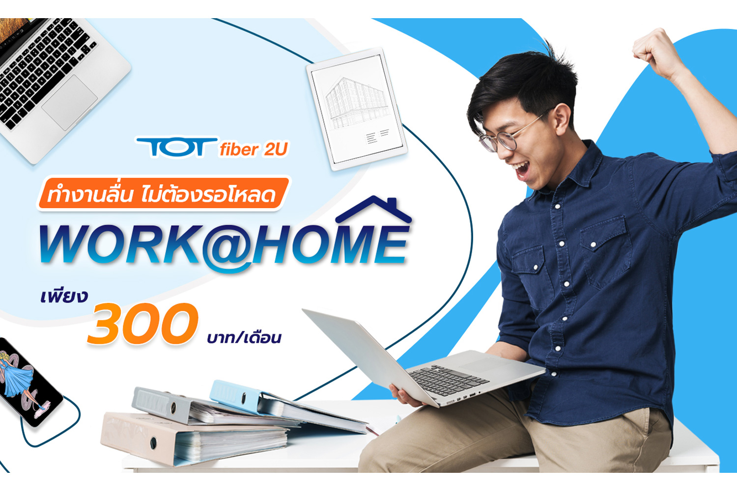 ทำงานได้อย่างมีประสิทธิภาพเพราะมีอินเทอร์เน็ตคุณสมบัติพร้อมใช้งาน ให้ความเร็ว แรง แบบไม่หยุดยั้งด้วย TOT fiber 2U ในแพ็กเกจ Work@Home ที่เราพร้อมให้คุณ Save ทั้งงาน และ Save ทั้งเงิน สนใจลงทะเบียนเพื่อเข้ารับบริการหรือดูรายละเอียดเพิ่มเติมได้ที่ TOT fiber 2U Work@Home