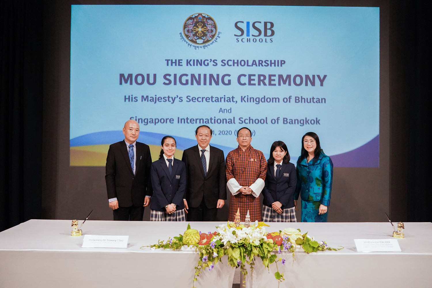 โรงเรียน SISB และราชอาณาจักรภูฏานได้ลงนามบันทึกความเข้าใจอย่างเป็นทางการเพื่อมอบทุนการศึกษาเต็มจำนวนให้กับนักเรียนที่เรียนดีที่สุดจากราชอาณาจักรภูฏานซึ่งได้รับการคัดเลือกจากสมเด็จพระราชาธิบดี Jigme Khesar Namgyel Wangchuck ในที่นี้เรียกว่า “The King’s Scholarship”