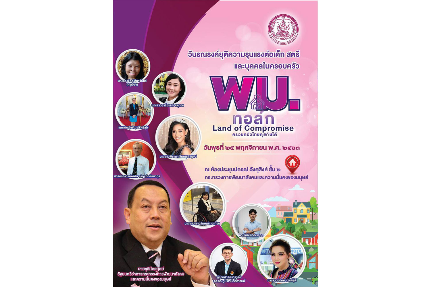 กระทรวงพัฒนาสังคมและความมั่นคงของมนุษย์ จัดงานเสวนา “Land of Compromise : ครอบครัวไทย คุยกันได้” เนื่องในวันรณรงค์ยุติความรุนแรงต่อเด็ก สตรี และบุคคลในครอบครัว