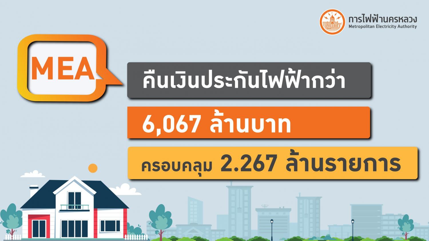 MEA คืนเงินประกันไฟฟ้าแล้วกว่า 6,067 ล้านบาท ครอบคลุม 2.267 ล้านรายการ