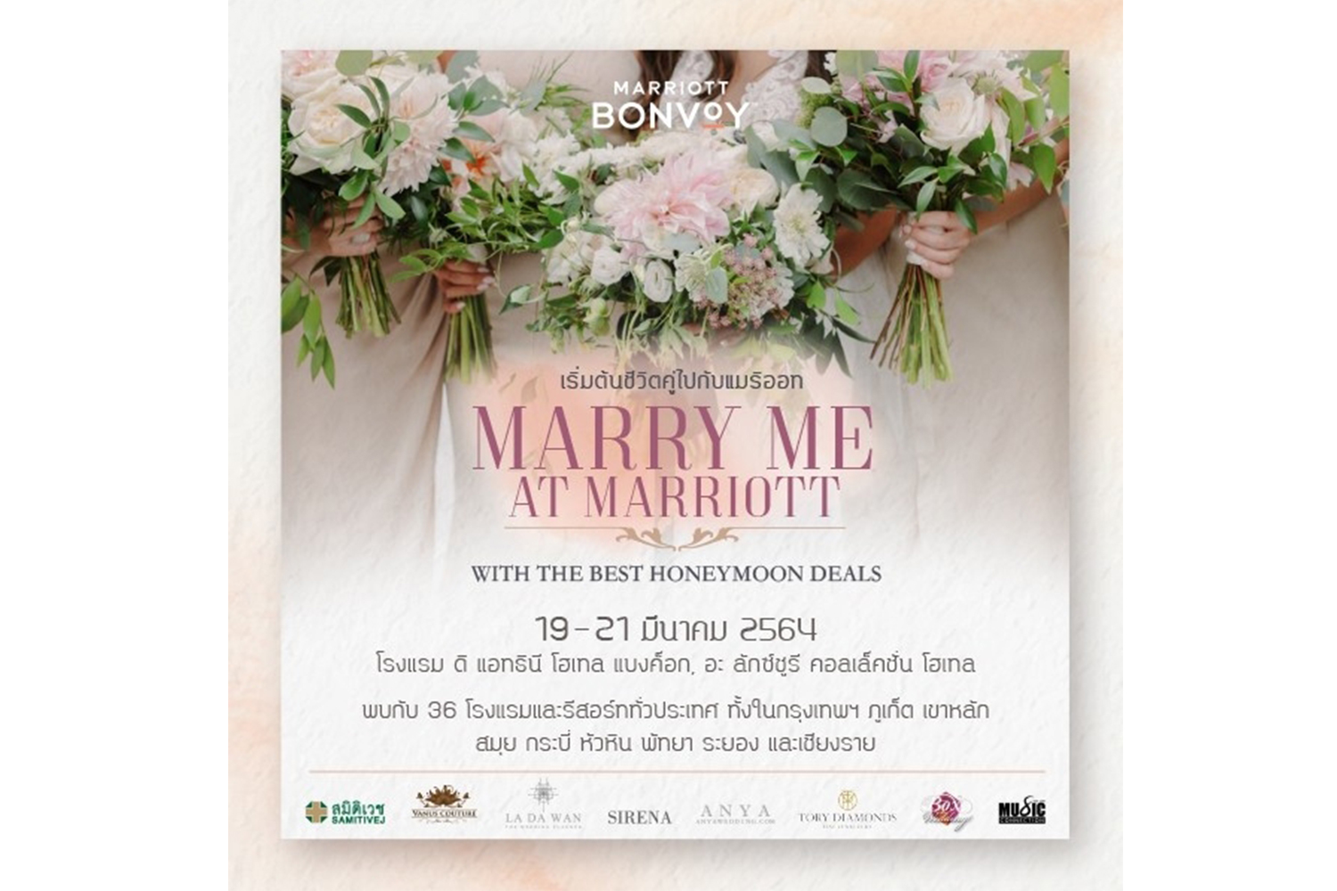 “MARRY ME AT MARRIOTT” งานแฟร์สำหรับงานแต่งงานและฮันนีมูน สร้างความฝันให้เป็นความจริงแก่คู่บ่าวสาว จัดขึ้นในกรุงเทพฯ