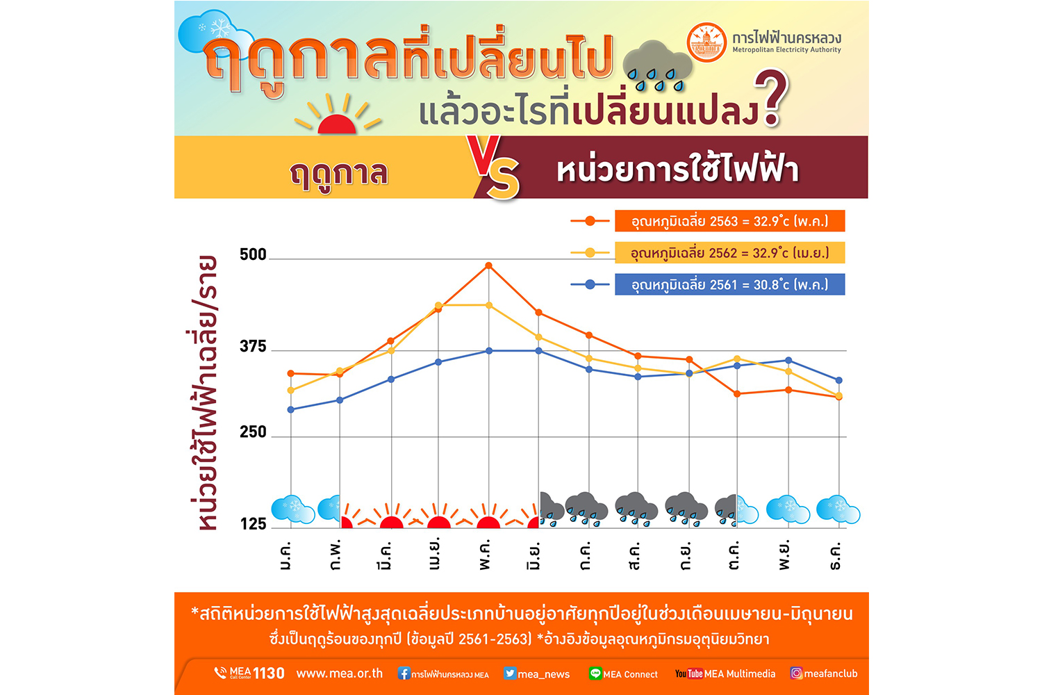 เคยรู้สึกไหม...ฤดูกาลที่เปลี่ยนไป แล้วอะไรที่เปลี่ยนแปลง ? นอกจาก วัน เดือน ปี ที่ล่วงเลย ลองตามไปดูอุณหภูมิเฉลี่ย VS หน่วยการใช้ไฟฟ้า กันดีกว่า