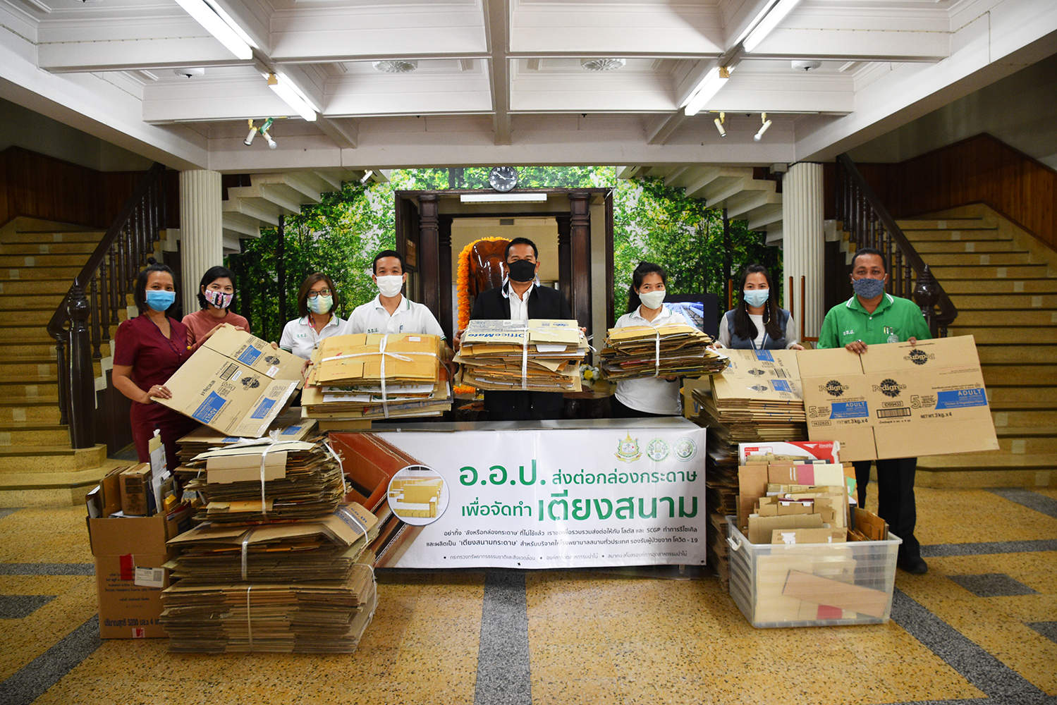 เมื่อวันที่ 28 เมษายน 2564 นายประสิทธิ์ เกิดโต รองผู้อำนวยการองค์การอุตสาหกรรมป่าไม้ (อ.อ.ป.) ,สมาชิกสมคมสโมสรองค์การอุตสาหกรรมป่าไม้ และพนักงาน อ.อ.ป. ร่วมกันรวบรวม “ลังและกล่องกระดาษ” ที่ได้รับบริจาค ทยอยมอบให้กับเทสโก้ โลตัส และ SCGP