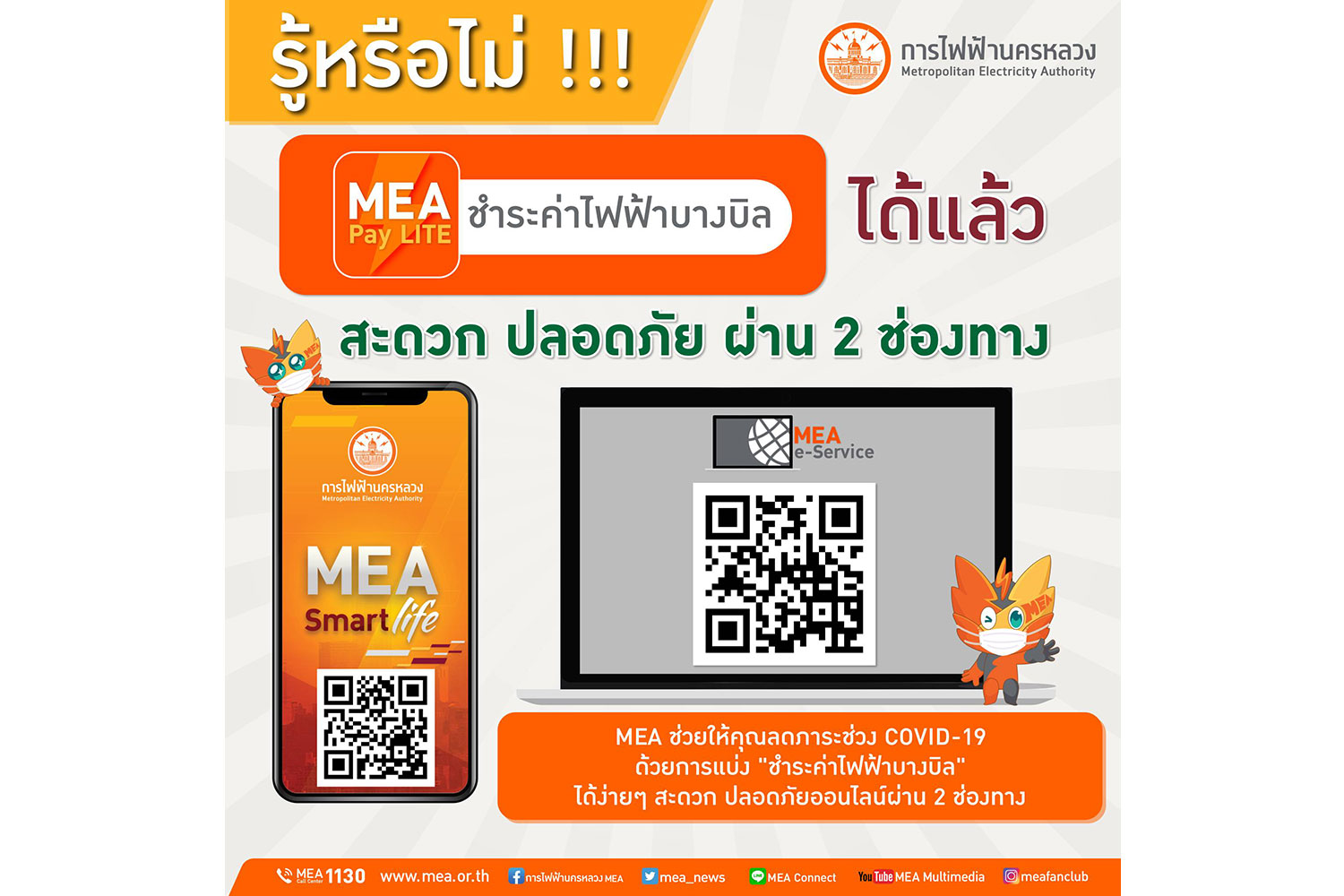 MEA ช่วยให้คุณลดภาระช่วง COVID-19 ด้วยการแบ่ง "ชำระค่าไฟฟ้าบางบิล" ได้ง่าย ๆ สะดวก ปลอดภัย ออนไลน์ผ่าน 2 ช่องทาง