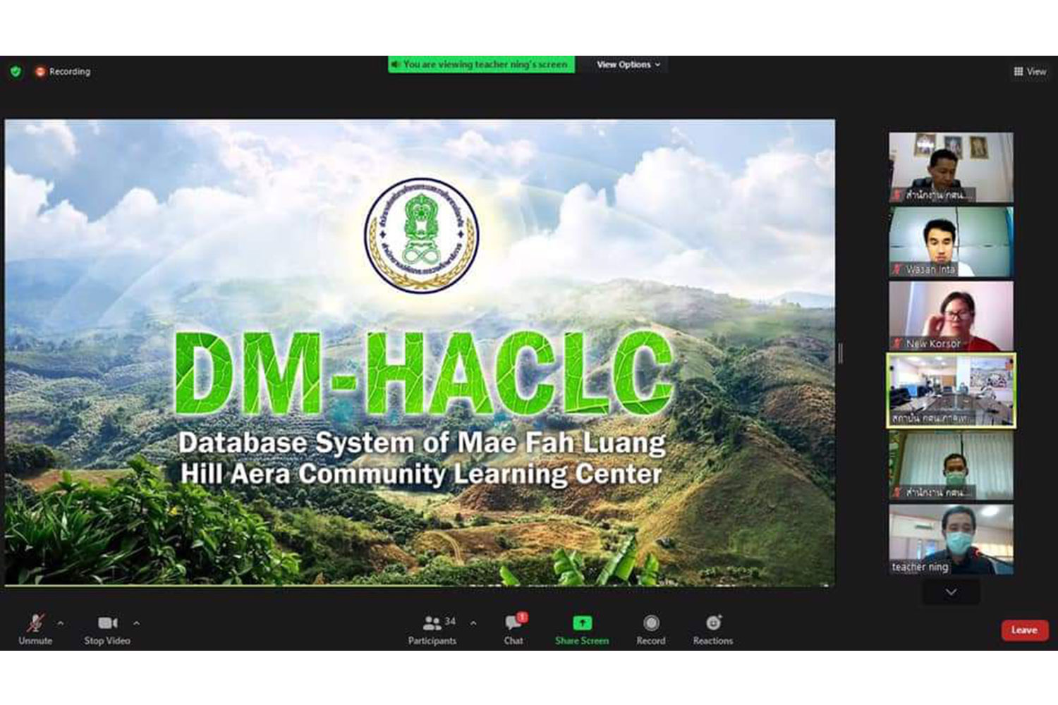 เมื่อวันที่ 21 กรกฎาคม 2564 สำนักงาน กศน. โดยสถาบัน กศน.ภาคเหนือและกลุ่มส่งเสริมกิจการการศึกษาและเครือข่าย ได้จัดประชุมนำเสนอผลการพัฒนาระบบฐานข้อมูลสารสนเทศศูนย์การเรียนชุมชนชาวไทยภูเขา “แม่ฟ้าหลวง” (Database System of Mae Fah Luang Hill Area Community Learning Center) หรือ ระบบ DM-HACLC (ดีเอ็มแฮก) ผ่าน ระบบ Zoom Meeting โดย ดร.วรัท พฤกษาทวีกุล เลขาธิการ กศน. ได้มอบหมายให้ ดร.วัชรีวรรณ กันเดช ผู้อำนวยการกลุ่มส่งเสริมกิจการการศึกษาและเครือข่าย สำนักงาน กศน. เป็นประธานการประชุม ในการประชุมดังกล่าวได้นำเสนอผลการพัฒนาระบบ DM-HACLC ซึ่งระบบนี้เป็นระบบการรายงานข้อมูลการจัดการศึกษานอกระบบและการศึกษาตามอัธยาศัยที่จัดในศูนย์การเรียนชุมชนชาวไทยภูเขา “แม่ฟ้าหลวง” ผ่านระบบเทคโนโลยี ซึ่งฐานข้อมูลประกอบไปด้วย 1) ข้อมูลทั่วไป ศศช. 2) ข้อมูลครู ศศช. 3) ข้อมูลรายบุคคล/ครัวเรือน 4) ข้อมูลหมู่บ้าน/ชุมชน 5) ข้อมูลโครงการ กิจกรรม ศศช. และ 6) ข้อมูลเครือข่าย ศศช. ระบบดังกล่าวมีประโยชน์อย่างยิ่งต่อการรายงานผลของ ครู ศศช. ครูบนพื้นที่สูงในการจัดเก็บข้อมูลและรายงานข้อมูล ตลอดจนทำให้ผู้ใช้ระบบทุกระดับสามารถใช้ข้อมูลในระบบงานต่าง ๆ ร่วมกันได้ โดยไม่เกิดความซ้ำซ้อนหรือความขัดแย้งของข้อมูล อีกทั้งข้อมูลในระบบจะมีความถูกต้อง ชัดเจน เชื่อถือได้ เป็นปัจจุบัน สามารถนำข้อมูลมาใช้ได้ทันที สะดวก รวดเร็วในการสืบค้นข้อมูล และเผยแพร่ข้อมูลให้กับหน่วยงานที่เกี่ยวข้องได้