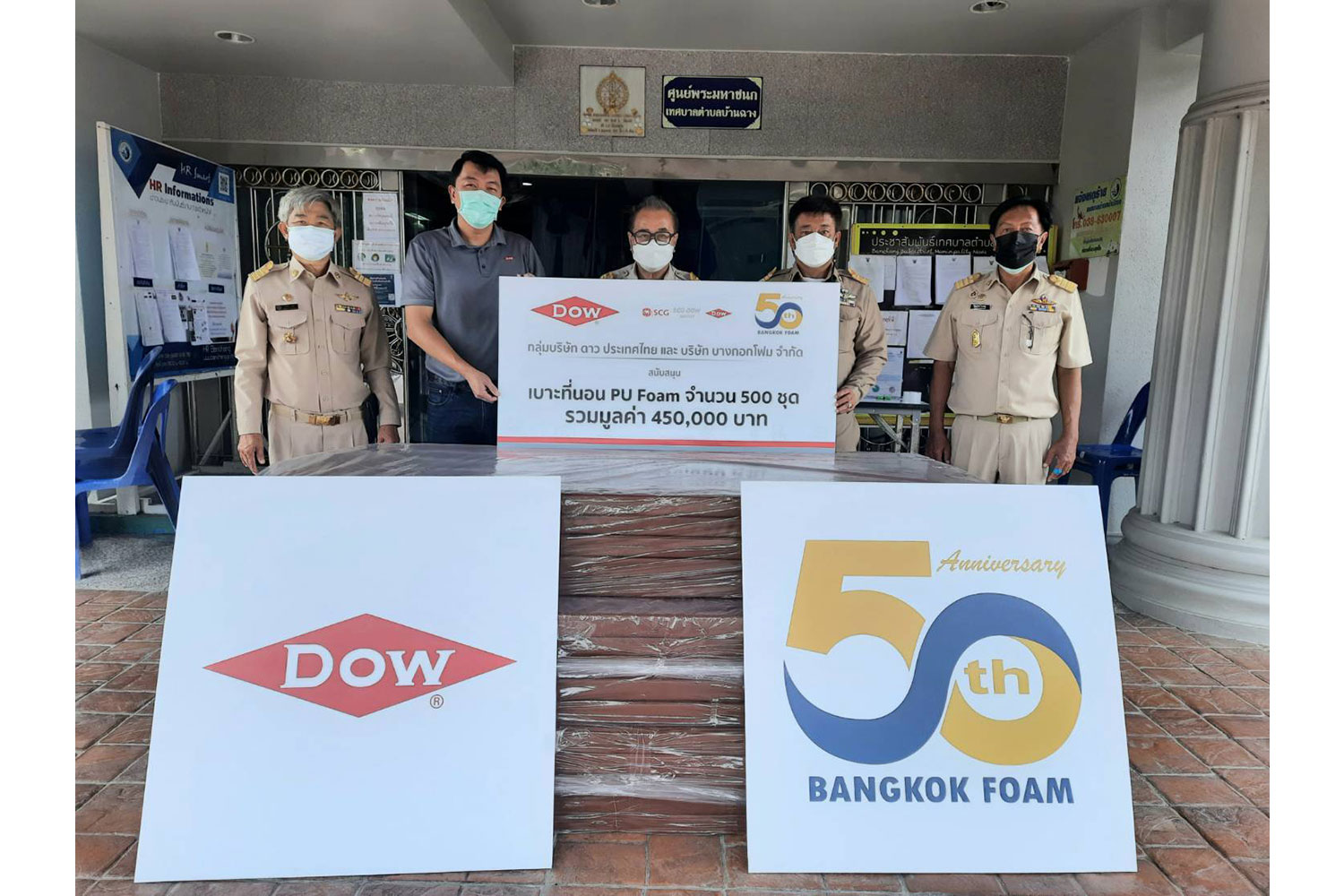 ระยอง – 26 สิงหาคม 2564 - บริษัท บางกอกโฟม จำกัด ร่วมกับกลุ่มบริษัท ดาว ประเทศไทย (Dow) มอบเบาะที่นอนทำจากวัสดุโพลียูรีเทนโฟม (PU Foam) พร้อมหุ้ม PVC จำนวน 500 ชุด รวมมูลค่ากว่า 450,000 บาท เพื่อสนับสนุนการปฏิบัติงานของโรงพยาบาลสนามในจังหวัดระยองและอำนวยความสะดวกให้กับผู้ป่วยโควิด-19 กลุ่มสีเหลืองที่เข้ามารับการดูแลรักษา