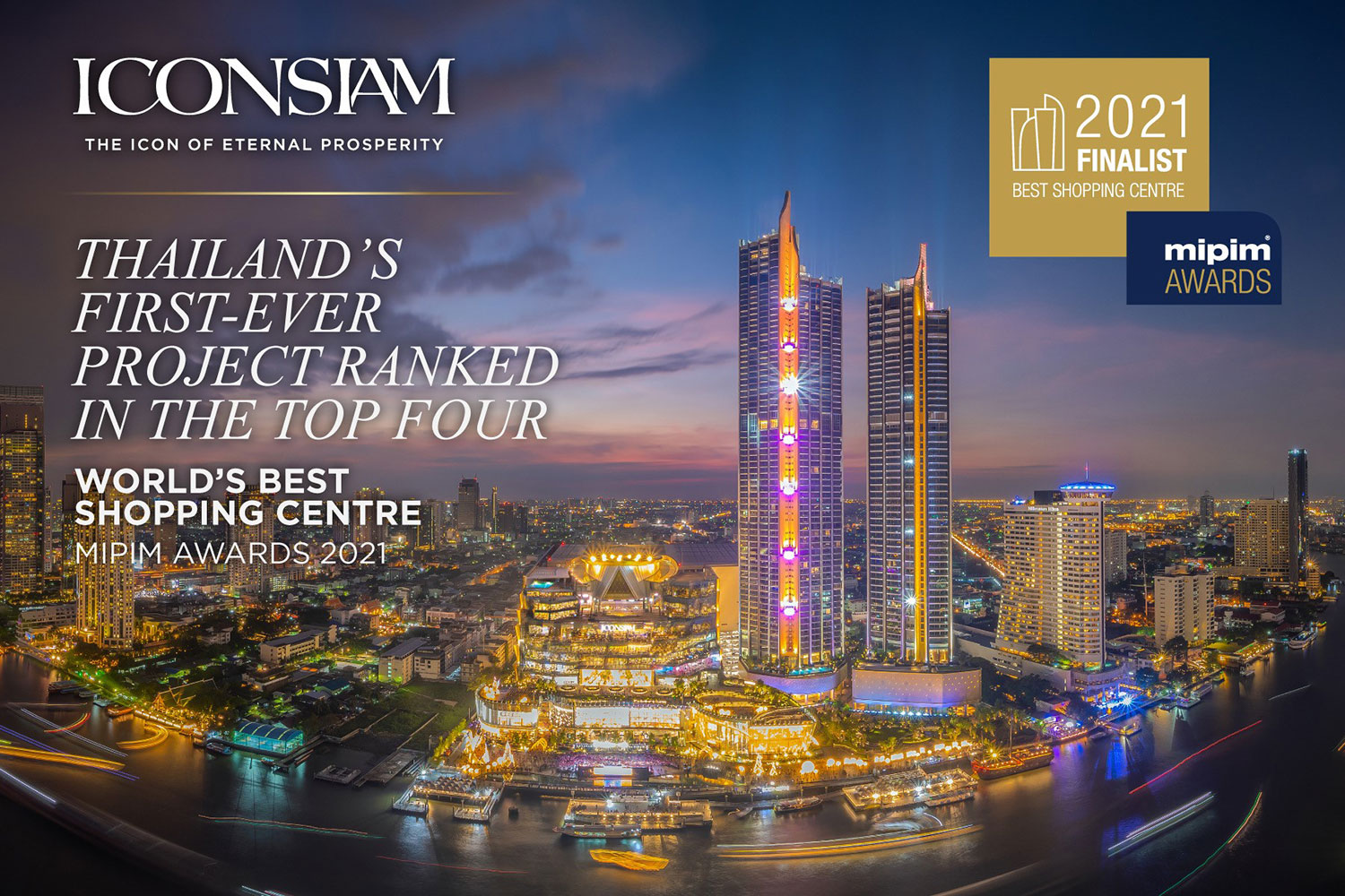 ไอคอนสยาม ติด 1 ใน 4 ศูนย์การค้าที่ดีที่สุดในโลกจากจำนวนผู้เข้าแข่งขัน 172 โครงการจาก 36 ประเทศ และถือเป็นโครงการพัฒนาอสังหาริมทรัพย์เพื่อการค้าปลีกแรกในประเทศไทยที่ได้รับเกียรติจาก MIPIM Awards ซึ่งเป็นเวทีประกวดโครงการอสังหาริมทรัพย์ระดับโลกที่มีมานานกว่า 30 ปี และได้รับการยกย่องจากผู้ประกอบการอสังหาริมทรัพย์จากทั่วโลกให้เป็นรางวัลออสการ์แห่งวงการอสังหาริมทรัพย์ ด้วยวิสัยทัศน์ในการทำโครงการแนวใหม่ของไอคอนสยามที่ถือกำเนิดจากความร่วมมือที่ยิ่งใหญ่ที่สุดครั้งหนึ่งแห่งยุคจากผู้เชี่ยวชาญในแขนงต่างๆทั่วโลก รวม 15 ชาติ และผู้เชี่ยวชาญคนไทยจากทุกภาคส่วน ไม่ว่าจะเป็นสถาปนิก วิศวกร ศิลปิน ช่างฝีมือ ผู้นำชุมชนจากหลายจังหวัดทั่วไทย รวมถึงภาครัฐและภาคเอกชน ประชาสังคม ตลอดจนผู้ประกอบการร้านค้ากว่า 1,000 ราย เพื่อสร้างโครงการที่เสนอที่สุดแห่งความเป็นไทยภายใต้ความคิดสร้างสรรค์และนวัตกรรม ทั้งยังเป็นโครงการที่ถูกวางรากฐานให้ส่งต่อประโยชน์ และความเจริญรุ่งเรืองไปสู่ชุมชนและธุรกิจที่รายล้อมอย่างมหาศาล เป็นบทพิสูจน์ให้เห็นแล้วว่าเป็นโครงการที่มีศักยภาพเป็นที่ยอมรับนับถือระดับโลก ทั้งนี้ ตั้งแต่เปิดให้บริการเกือบ 3 ปีที่ผ่านมา ไอคอนสยามได้รับรางวัลชนะเลิศแล้วถึง 13 รางวัลในสาขาต่างๆจากเวทีชั้นนำของโลกมาเป็นลำดับ อาทิ รางวัล โครงการที่ออกแบบดีที่สุดในโลก หรือ Best Design of the Year จาก World Retail Awards 2019 โดยสภาการค้าปลีกโลก และ รางวัลชนะ เลิศ สาขาศูนย์การค้าที่ดีที่สุด จากเวที MAPIC Awards 2019 เมืองคานส์ ประเทศฝรั่งเศส และ รางวัล VIVA Best-of-the-Best Awards 2020 ในฐานะ โครงการพัฒนาอสังหาริมทรัพย์เพื่อการค้าปลีกดีที่สุดในโลก จาก International Council Shopping Centers เป็นต้น