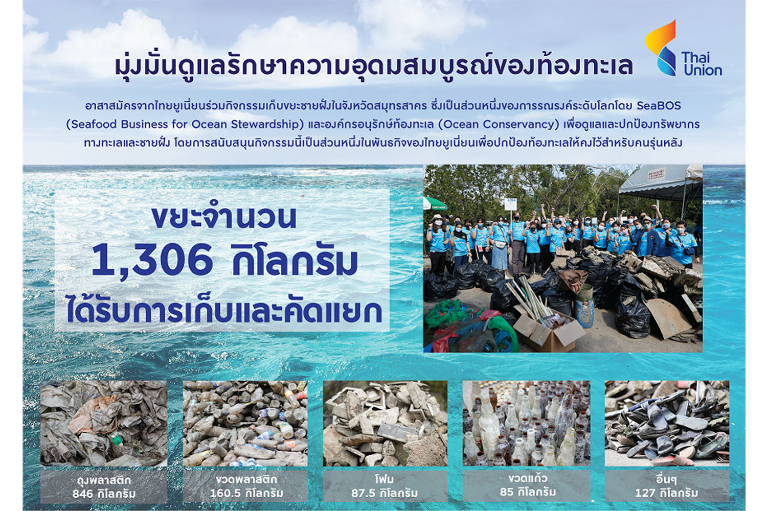 บริษัท ไทยยูเนี่ยน กรุ๊ป จำกัด (มหาชน) ได้เข้าร่วมโครงการเก็บขยะชายฝั่งเพื่อปกป้องสิ่งแวดล้อมในจังหวัดสมุทรสาคร ซึ่งเป็นส่วนหนึ่งของพันธกิจบริษัทที่จะช่วยดูแลรักษาความอุดมสมบูรณ์ของท้องทะเลทั่วโลก