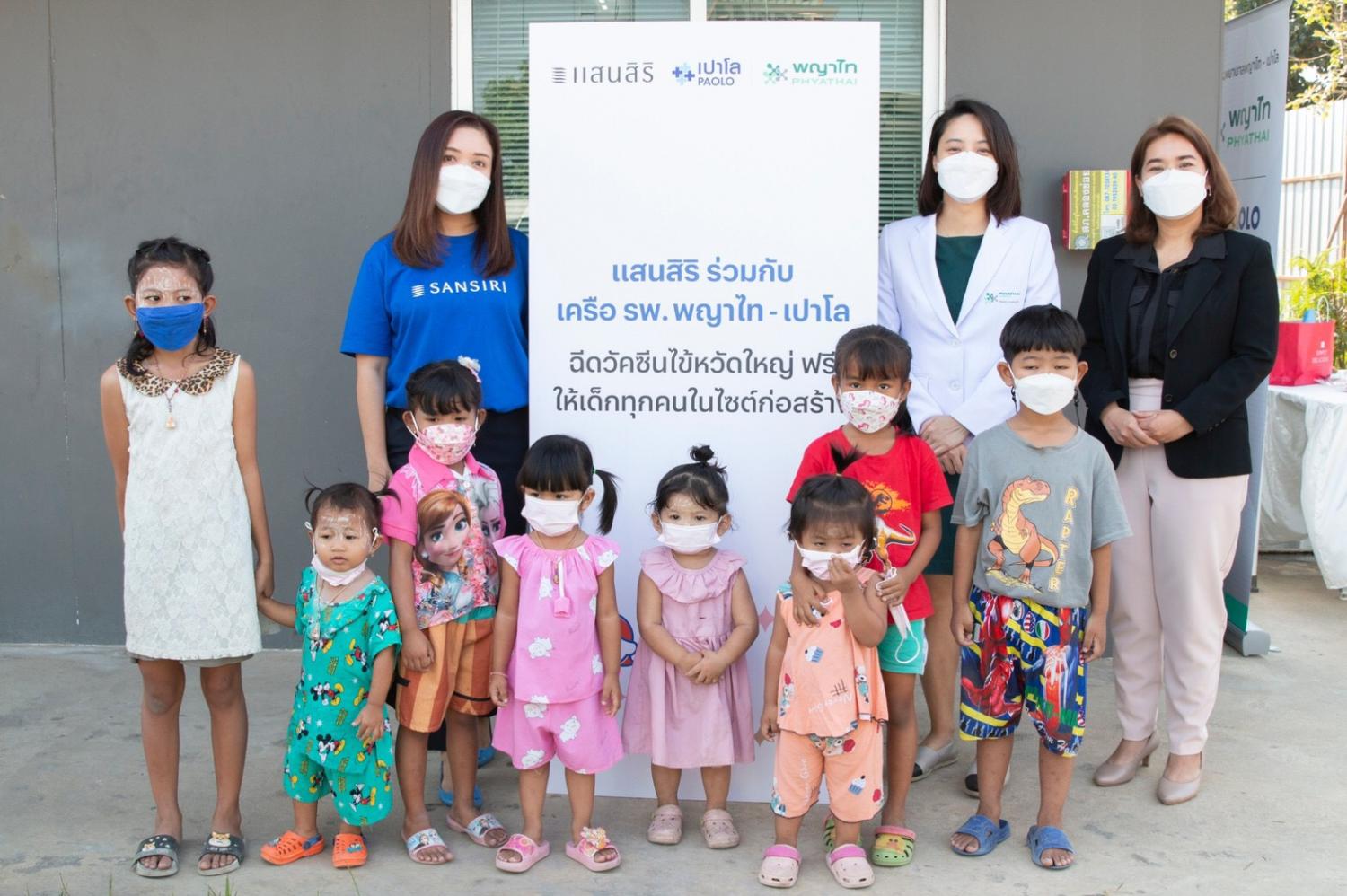 เครือโรงพยาบาลพญาไทและเปาโล จับมือ แสนสิริ ฉีดวัคซีนไข้หวัดใหญ่ให้เด็กอายุระหว่าง 6 เดือนถึง 7 ปีกว่า 300 คนในที่พักคนงานก่อสร้างโครงการก่อสร้างของแสนสิรินำร่องไซต์แรกที่สราญสิริ ชัยพฤกษ์-แจ้งวัฒนะ