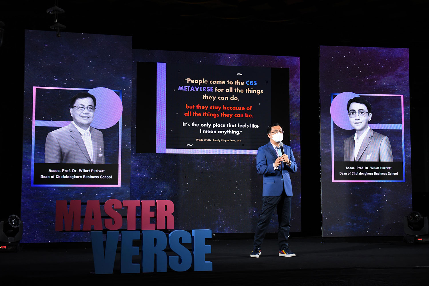 รองศาสตราจารย์ ดร. วิเลิศ ภูริวัชร คณบดี คณะพาณิชยศาสตร์และการบัญชี จุฬาลงกรณ์มหาวิทยาลัย (Chulalongkorn Business School) กล่าวในงานเสวนาว่า เมื่อคนกำลังเข้าสู่ยุค Metaverse หรือที่เรียกว่า จักรวาลนฤมิตร ที่พัฒนาจากเทคโนโลยี VR/AR ทำให้ส่งผลกระทบต่อรูปแบบการดำเนินธุรกิจและการตลาดมากมาย สิ่งที่น่าสนใจคือ การทำความเข้าใจกับเทคโนโลยีใหม่ และต้องตั้งคำถามว่า ทำไมถึงเป็นเช่นนั้นจึงจะจัดการกับโลกอนาคตได้ ในฐานะเสาหลักการศึกษา จึงได้ระดมพลเหล่ามาสเตอร์มาร่วมกันคิด ร่วมแชร์และผันจาก Metaverse ให้กลายเป็น Masterverse จักรวาลแห่งนักคิด
