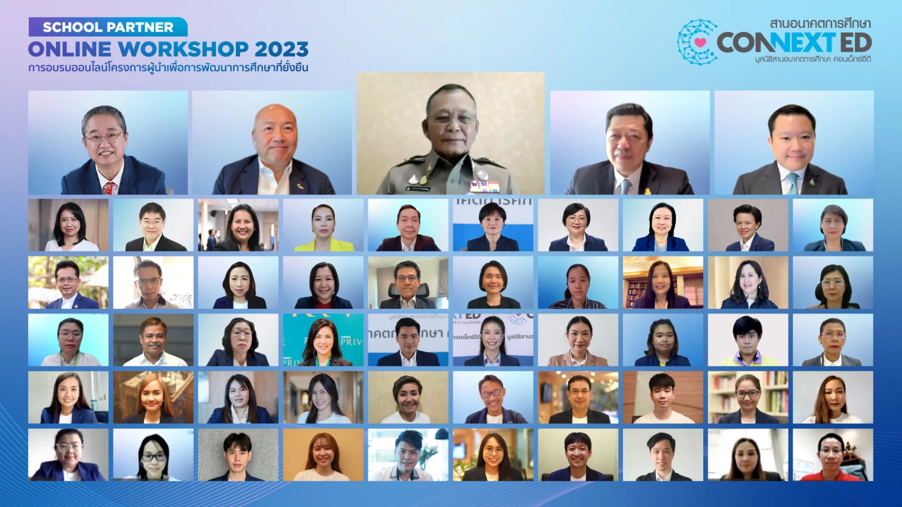 วันที่ 23 ก.พ. 2566 มูลนิธิสานอนาคตการศึกษา คอนเน็กซ์อีดี นำโดยองคมนตรี พลเอก ดาว์พงษ์ รัตนสุวรรณ (กลาง – บนสุด) ในฐานะประธานที่ปรึกษากิตติมศักดิ์ เปิดการอบรมออนไลน์ “โครงการผู้นำเพื่อการพัฒนาการศึกษาที่ยั่งยืน ประจำปี 2566” โดยมี นายศุภชัย เจียรวนนท์ (ที่ 2 จากขวา - แถวบนสุด) ประธานกรรมการมูลนิธิสานอนาคตการศึกษา คอนเน็กซ์อีดี และประธานคณะผู้บริหาร เครือเจริญโภคภัณฑ์