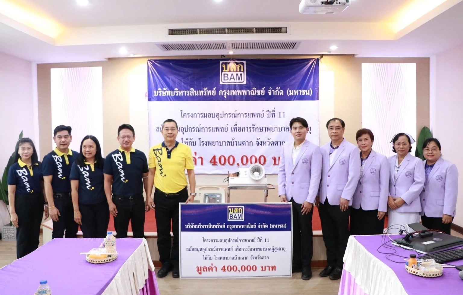BAM ลงพื้นที่มอบอุปกรณ์ทางการแพทย์ ให้กับโรงพยาบาลบ้านตาก จังหวัดตาก มูลค่ารวมกว่า 4 แสนบาท เดินหน้าส่งเสริมงานด้านสาธารณสุขของชุมชน และสังคมอย่างยั่งยืน