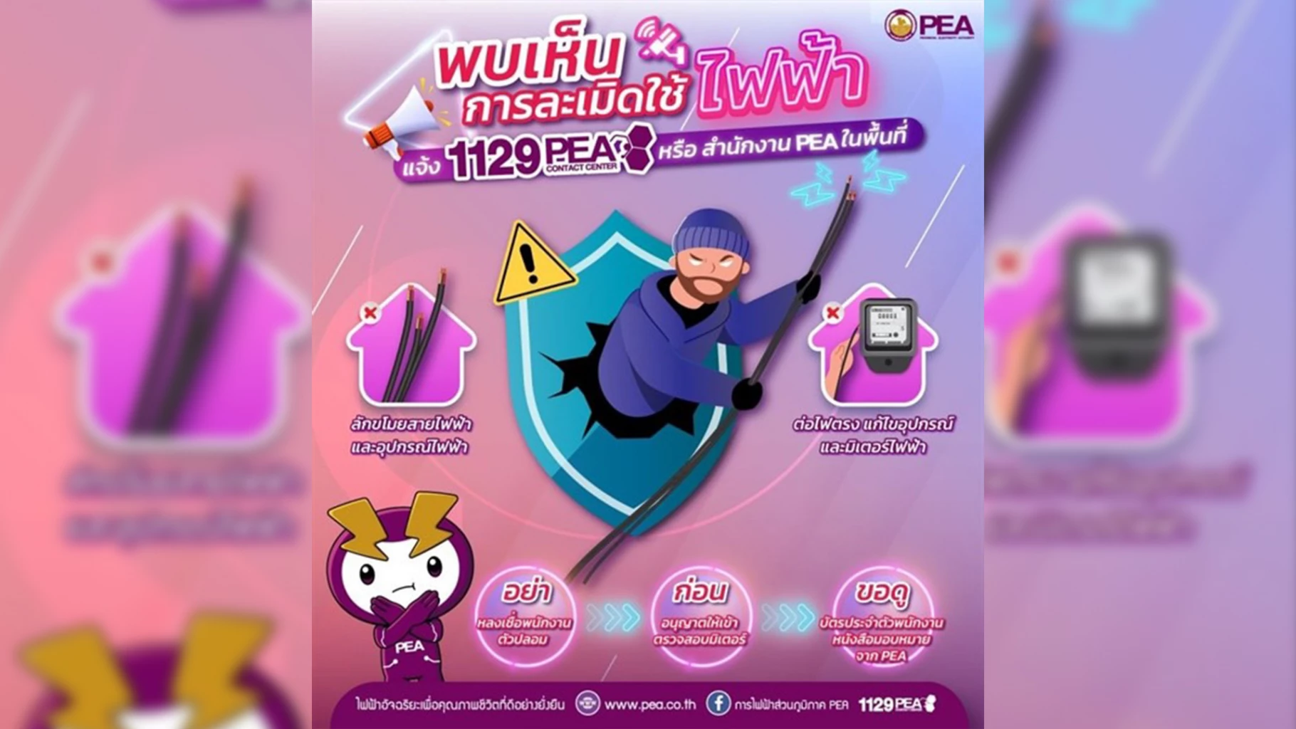PEA เตือนระวังกลุ่มมิจฉาชีพ แอบอ้างเป็นเจ้าหน้าที่การไฟฟ้าส่วนภูมิภาค