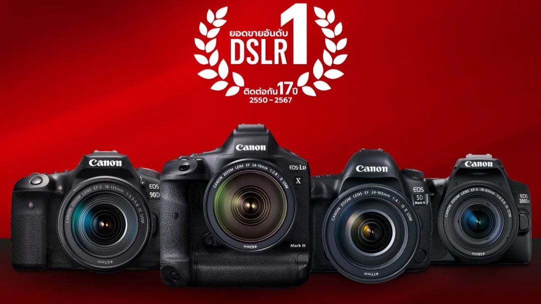 แคนนอน ขึ้นแท่นแชมป์ตลาดกล้อง DSLR อันดับ 1 ในเมืองไทยต่อเนื่อง 17 ปี ครองส่วนแบ่งตลาด 51% ตอบโจทย์เทรนด์การผลิตคอนเทนต์ในปัจจุบันและกระตุ้นยอดขายโตอย่างต่อเนื่อง