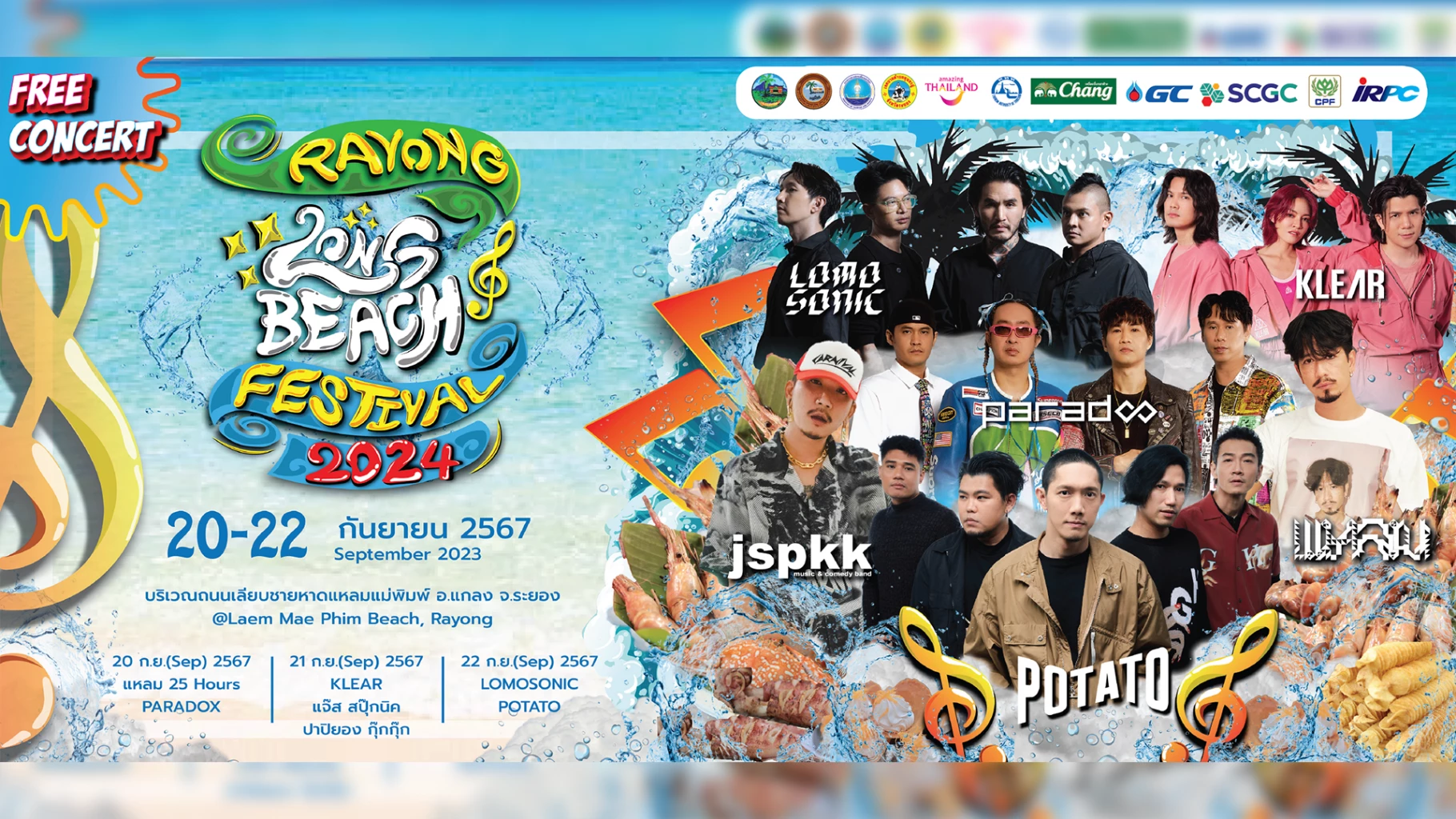 นักร้องดังพาเหรดขึ้นเวทีคอนเสิร์ต Rayong long beach festival 2024 ที่หาดแหลมแม่พิมพ์ จังหวัดระยองจัดอย่างยิ่งใหญ่ 20-22 ก.ย. นี้ เที่ยวและชมฟรีตลอดงาน