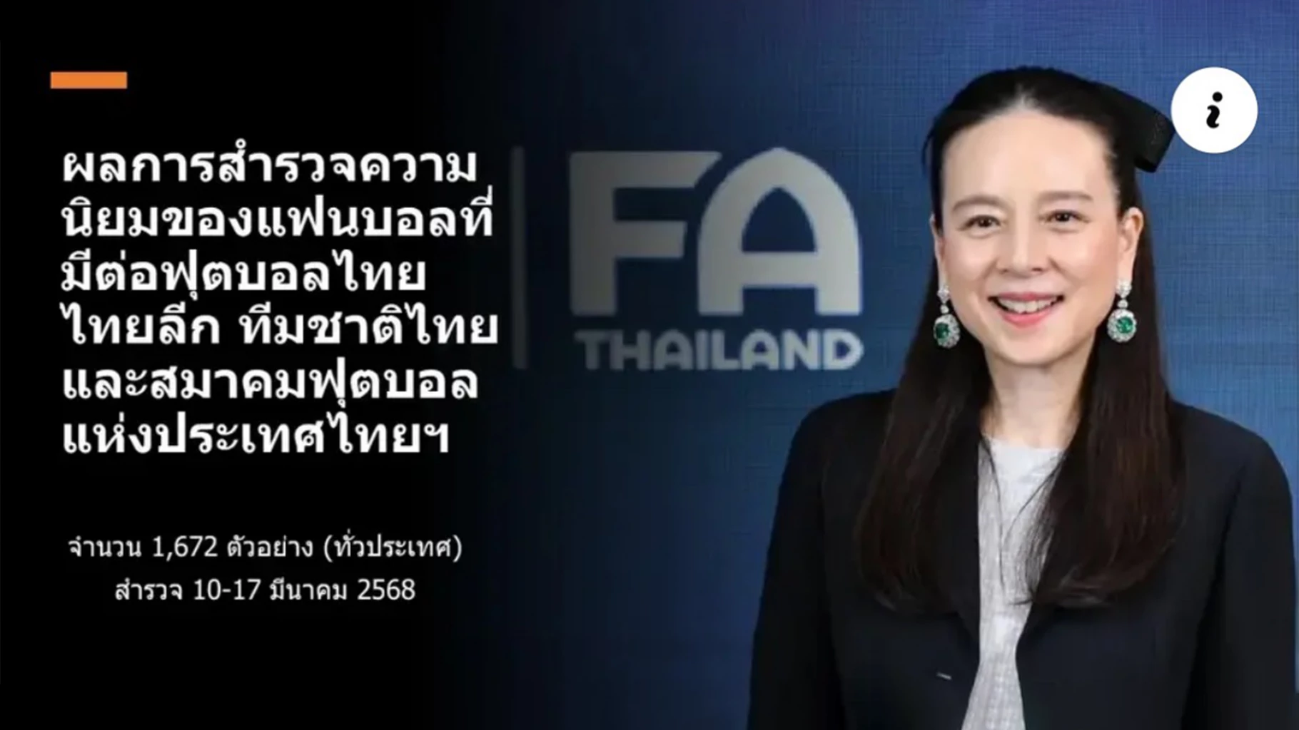 97% แฟนบอลไทยชื่นชมสมาคมฟุตบอลยุคมาดามแป้ง โปร่งใส-พัฒนาเด่น