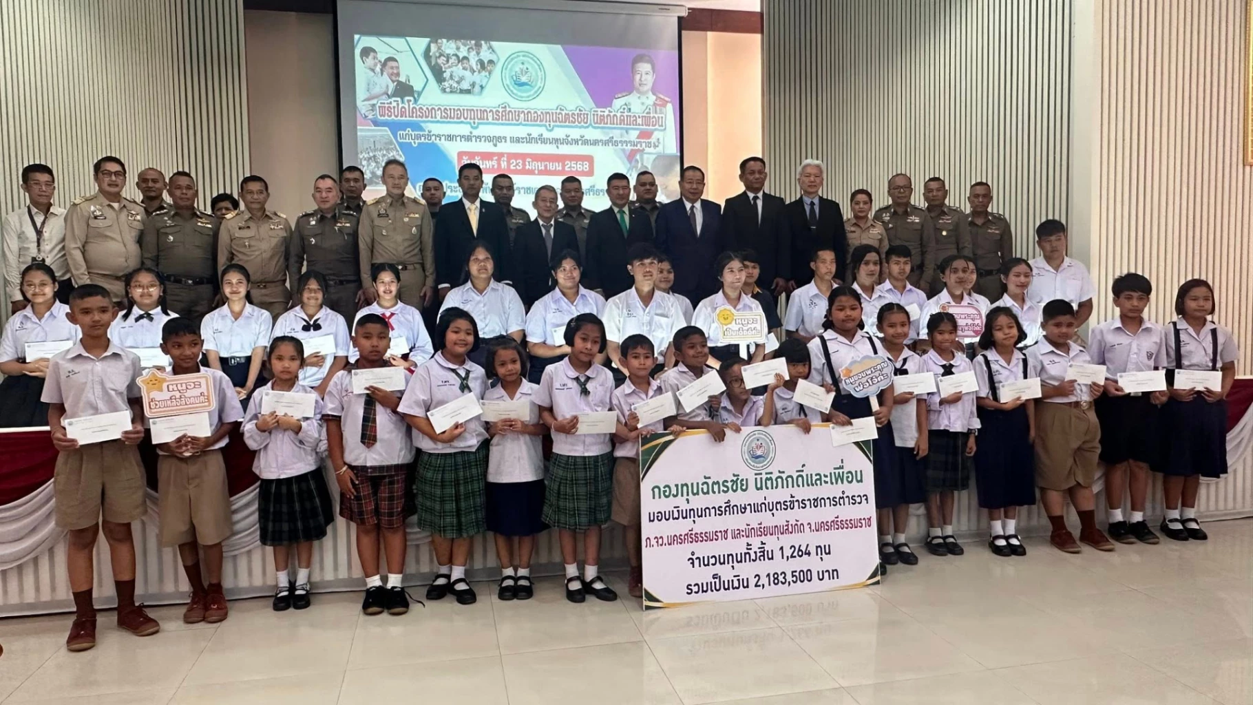 กองทุนฉัตรชัย นิติภักดิ์และเพื่อน ได้จัดพิธีมอบทุนการศึกษาประจำปี 2568 ณ หอประชุมขุนพันธรักษ์ราชเดช กองบังคับการตำรวจภูธรจังหวัดนครศรีธรรมราช โดยมอบทุนให้แก่นักเรียนและบุตรข้าราชการตำรวจในพื้นที่รวม 1,264 ทุน คิดเป็นมูลค่ารวม 2,183,500 บาท เพื่อสนับสนุนโอกาสทางการศึกษาและเสริมสร้างเยาวชนที่มีจิตสาธารณะ